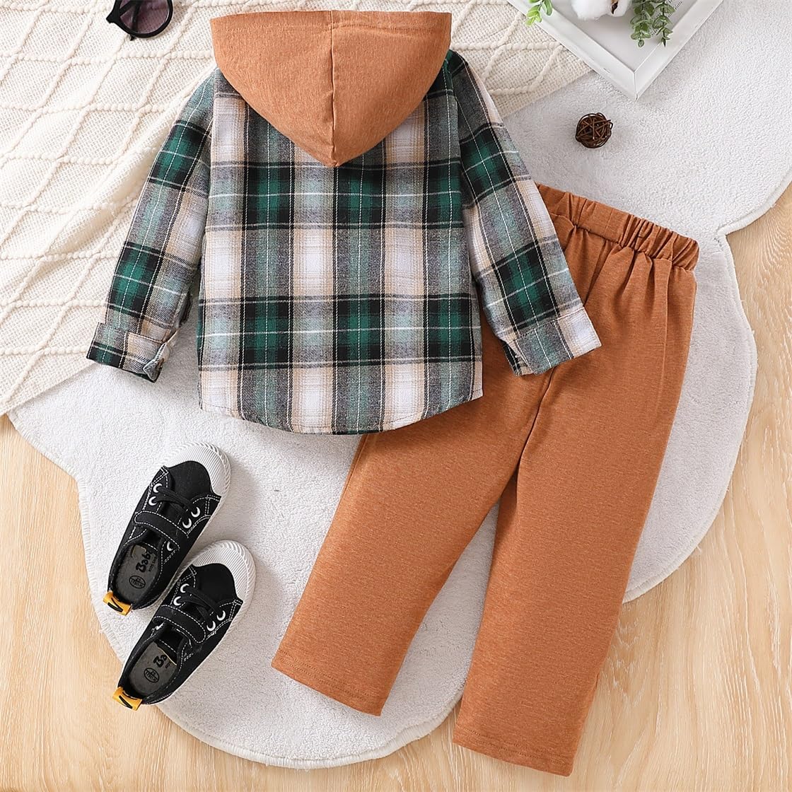 【High Quality Material】: Long sleeve toddler clothes for boys are made of high-quality cotton blend fabric, which is comfortable, breathable, and skin-friendly! It is the best gift for your baby boy and he will love to wear this lively, adorable, classic plaid hooded outfits set.