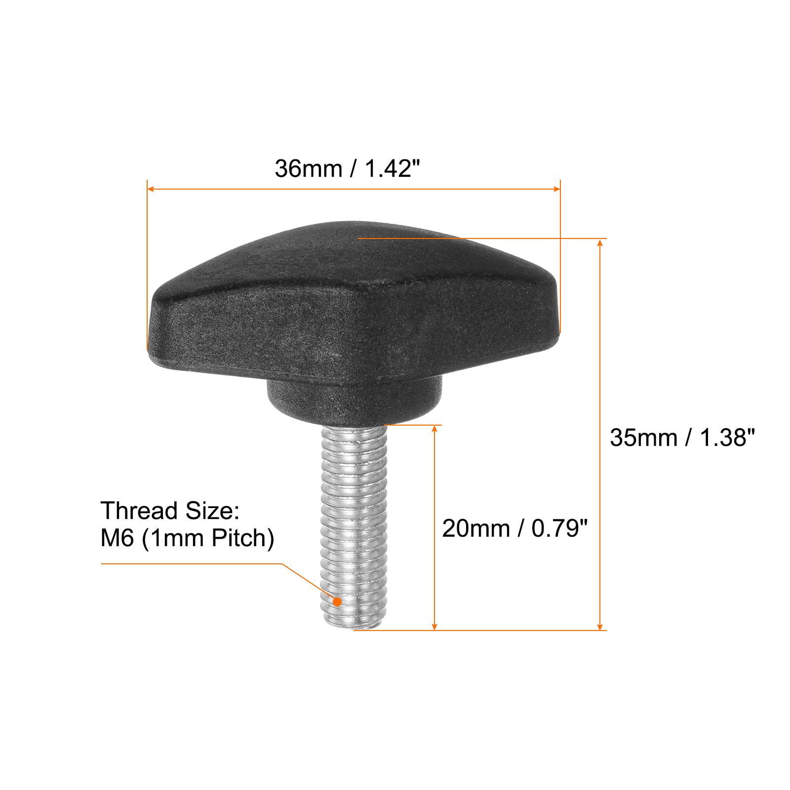 Size - Standard Thread Size: M6 (1mm Pitch); Thread Length: 20mm / 0.79"; Tee Wing Head Width: 36mm / 1.42"; Total Length: 35mm / 1.38"; Knob Style: Tee; Color: Black ( The threads are neat and clear, the force is even and deep, not easy to slip, and there are no burrs.)