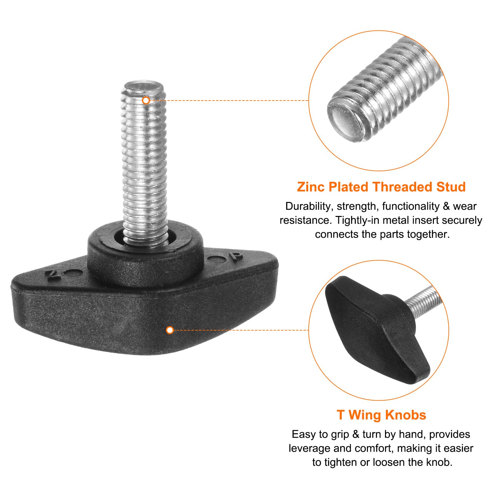 Features - The tightly-in metal insert are machine-injected at high temperatures to securely connect the parts together, easy to install. T wing knobs are easy to grip and turn by hand, providing leverage and comfort, making it easier to tighten or loosen the knob.