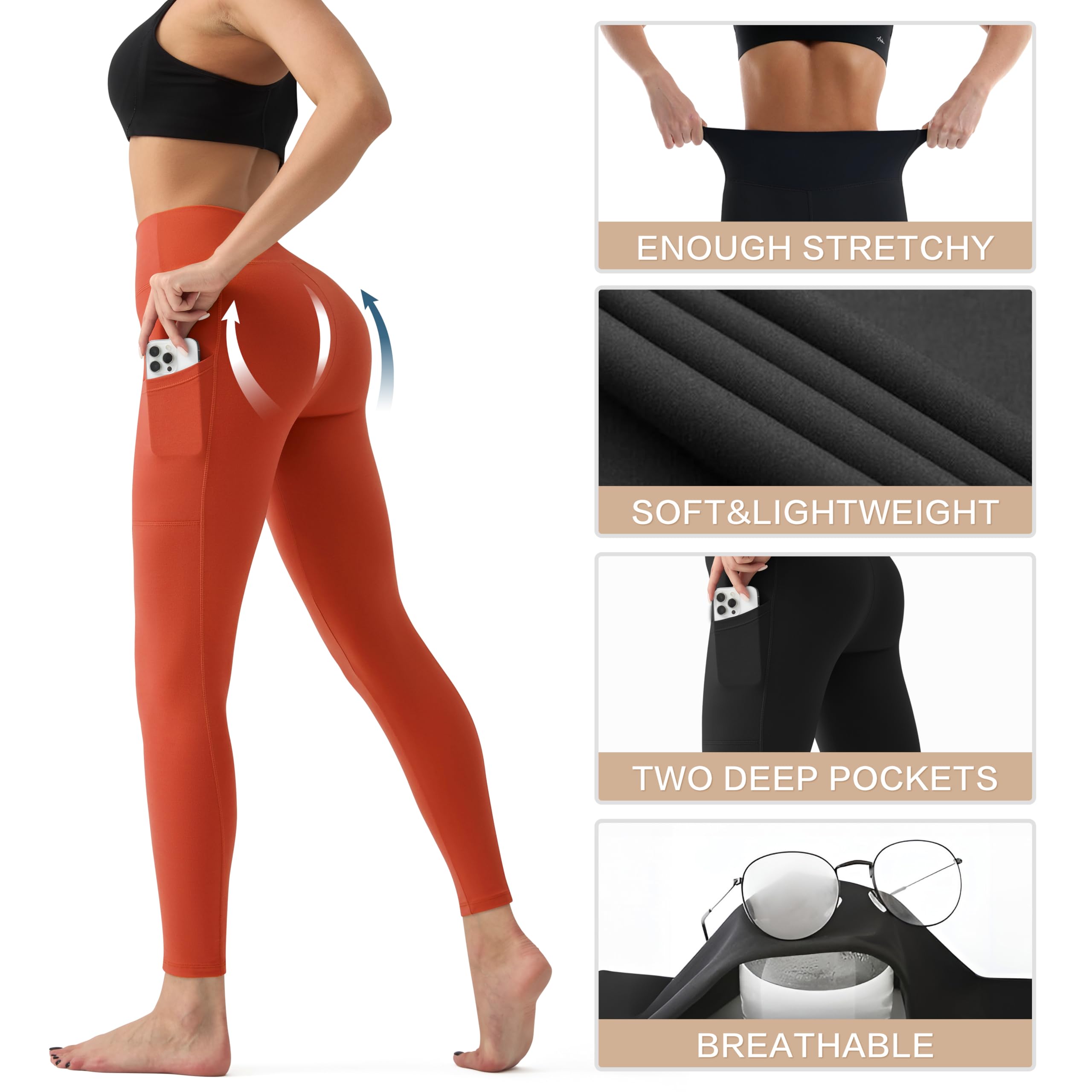 💗【HIGH WAIST TUMMY CONTROL】Our high waisted leggings offer lightweight comfort. The wide waistband with tummy control ensures a smooth and secure fit, accentuating your figure perfectly. They strike the perfect balance between fashion and functionality. With fewer seams, these leggings provide a cleaner and sleeker look, contouring your curves and body structure beautifully, without the concern of irritation or bruising on the inner thighs.