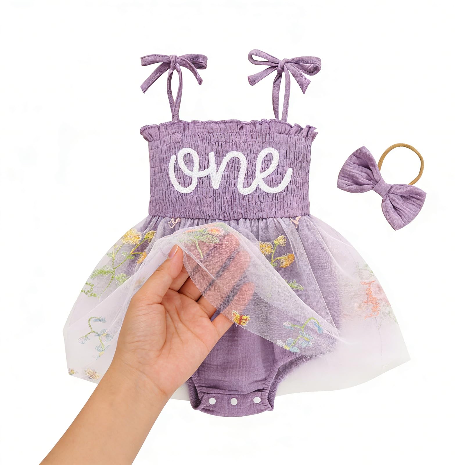 Design: Newborn baby girl playwear romper dress with sleeveless, solid color, multi-layered tulle, Snap leg openings for easy diaper changes, easier morning for novice mother.Cute princess 1st birthday outfit, fashionable and adorable embroidery ONE printed themed birthday clothes perfect for creating beautiful memory of her first birthday.