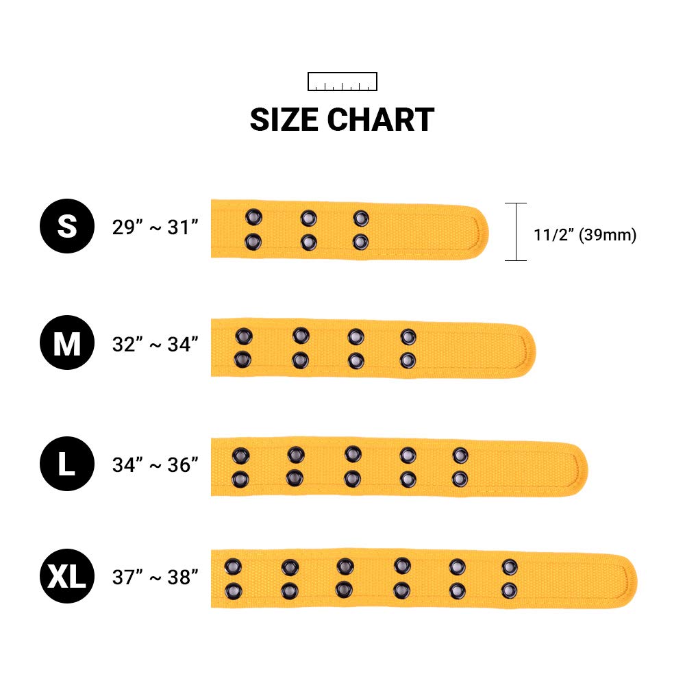 ● SIZES: The Canvas Double Grommet Belt is available in 4 sizes to fit every body type. S: 29"-31" waist; M: 32"-34" waist; L: 34"-36" waist; XL: 37"-38" waist. Wide: 1.5"