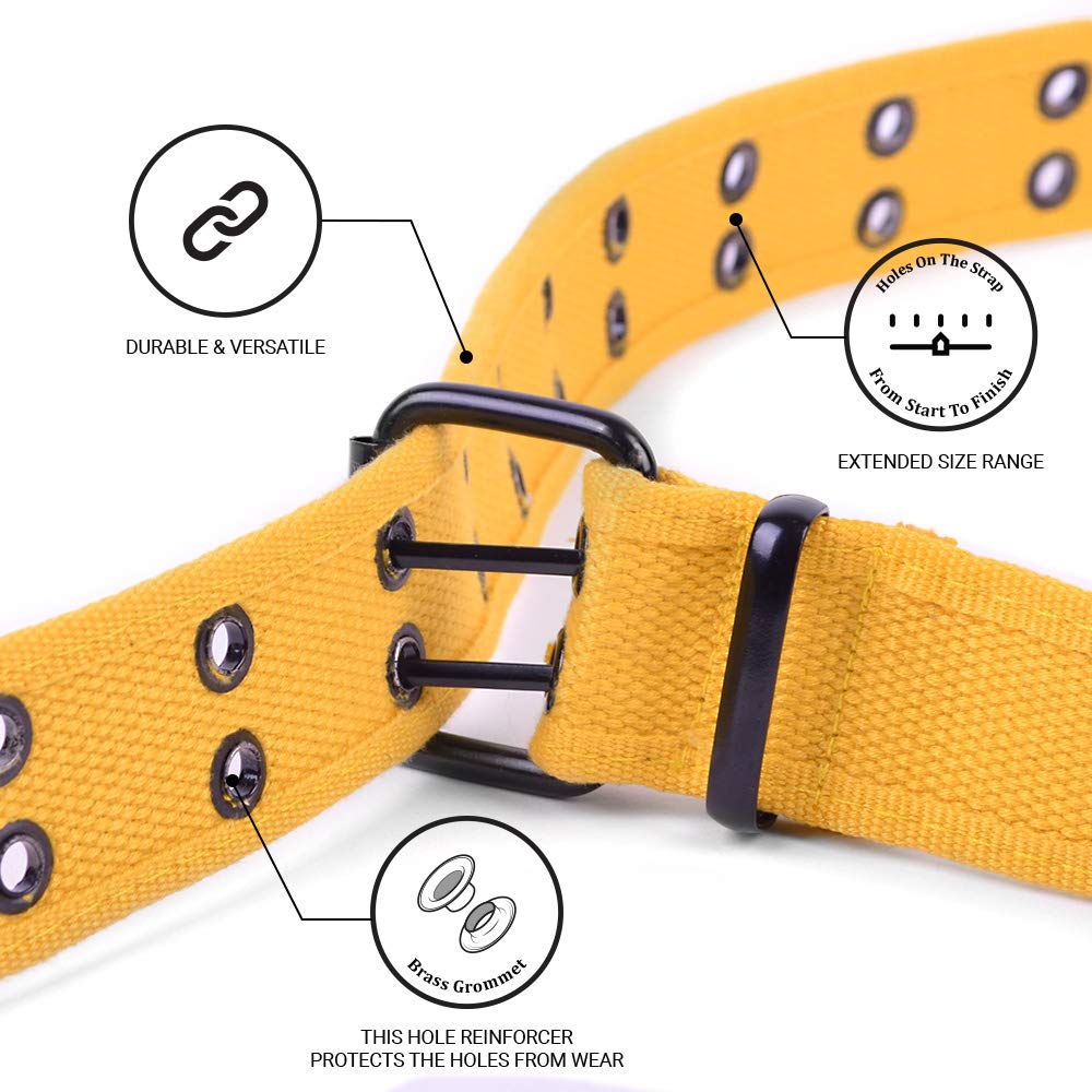 ● DOUBLE HOLE CANVAS BELT: The Grommet Unisex Belt its the perfect accessory for Men and Women. The casual style of the Canvas Belt makes it the right fit for every occasion.