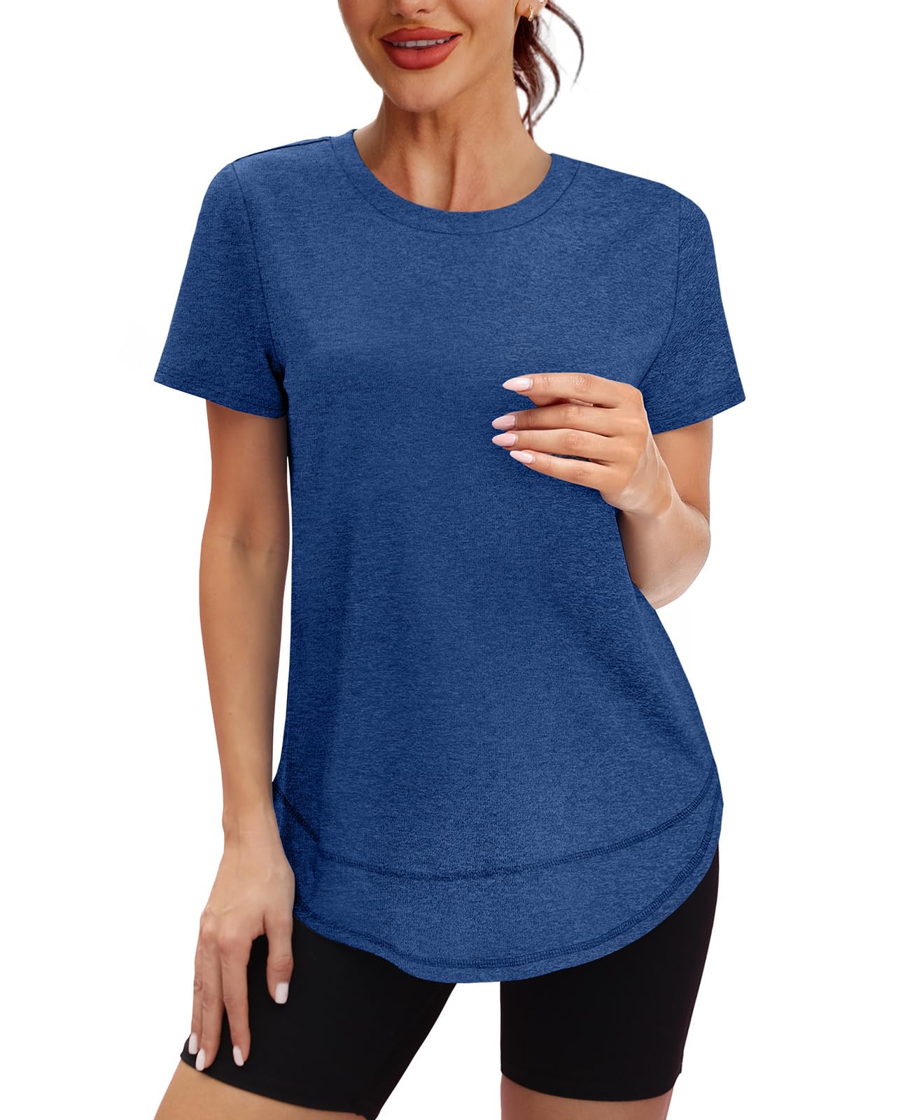 Fabric & Comfort: Crafted from 95% polyester and 5% spandex, this workout shirt offers a soft, breathable, and skin-friendly fit. Its quick-dry and moisture-wicking properties keep you comfortable during intense workouts or outdoor activities.