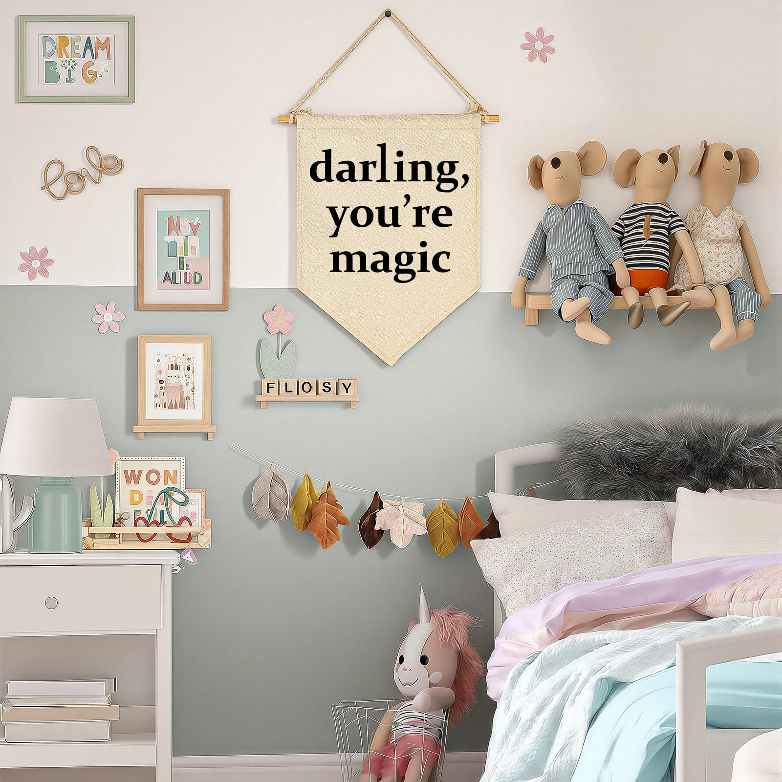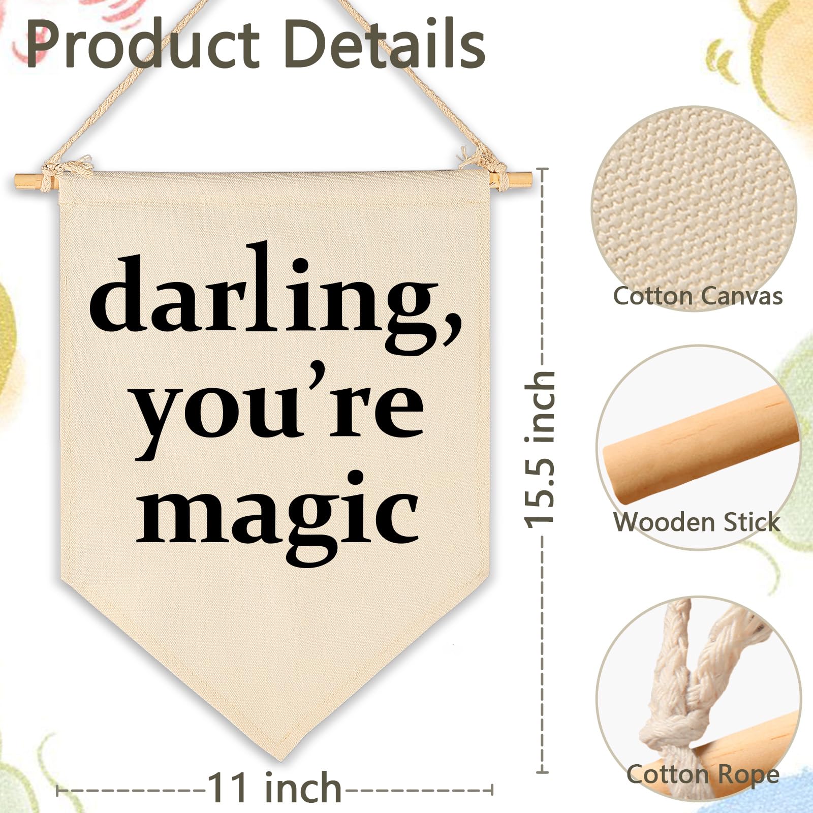 Charming Banner Wall Decor: Made from sturdy natural cotton canvas, this banner boasts a high-grade, lasting finish that adds vibrant color and texture to kid's space. It’s fade-resistant, keeping your decor looking fresh and beautiful for years