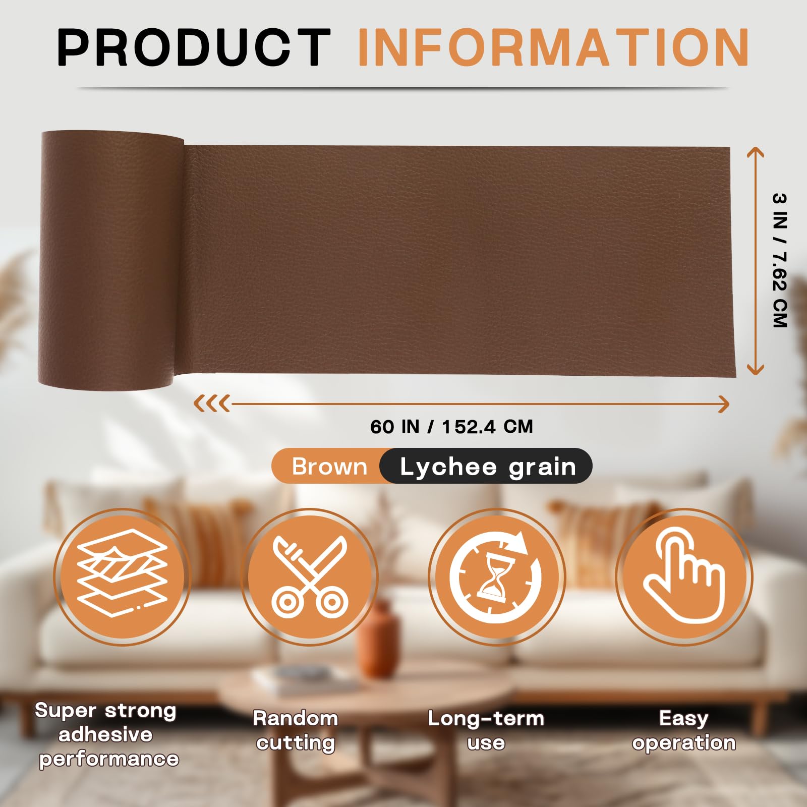 Self-Adhesive Leather Repair Size: Classic size 3x60in leather repair patch, convenient size, can be cut according to needs. Can meet the needs of daily repair work, is a good leather repair tape.