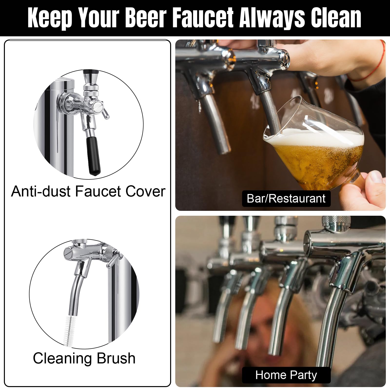 Easy Cleaning & MaintenanceοΌkegerator tower faucet comes with a special faucet brush and dust cover, which can deeply clean the residual inside the pipeline. The disassemble design (such as removing the top cover and spring structure) is convenient for deep disinfection, meeting the food-grade hygiene standards. In daily use, just covering the dust cover can block pollutants, making it suitable for commercial beer bars, restaurants, or home parties.