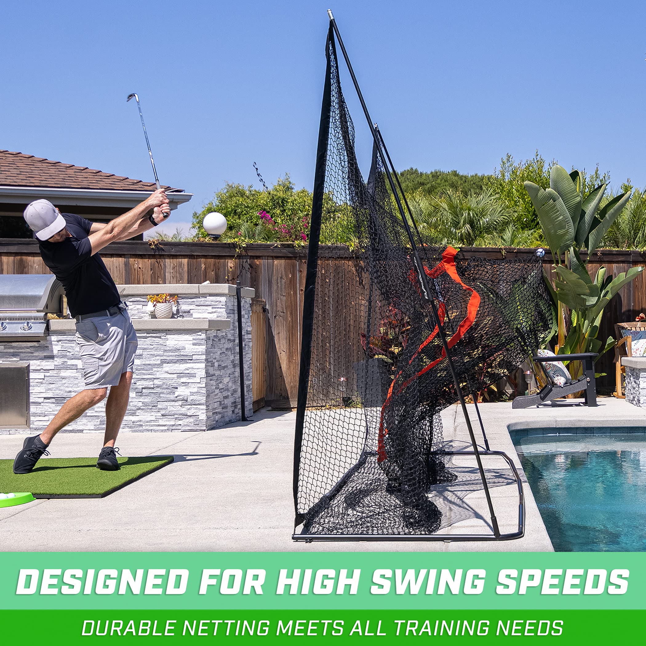 10 ft x 7 ft PRO NET: The ultimate overkill net to meet all your training needs and more; We took our #1 selling 10 ftx7 ft golf net and kicked it up an extra notch with 2x stronger netting for golfers who want the highest tier net
