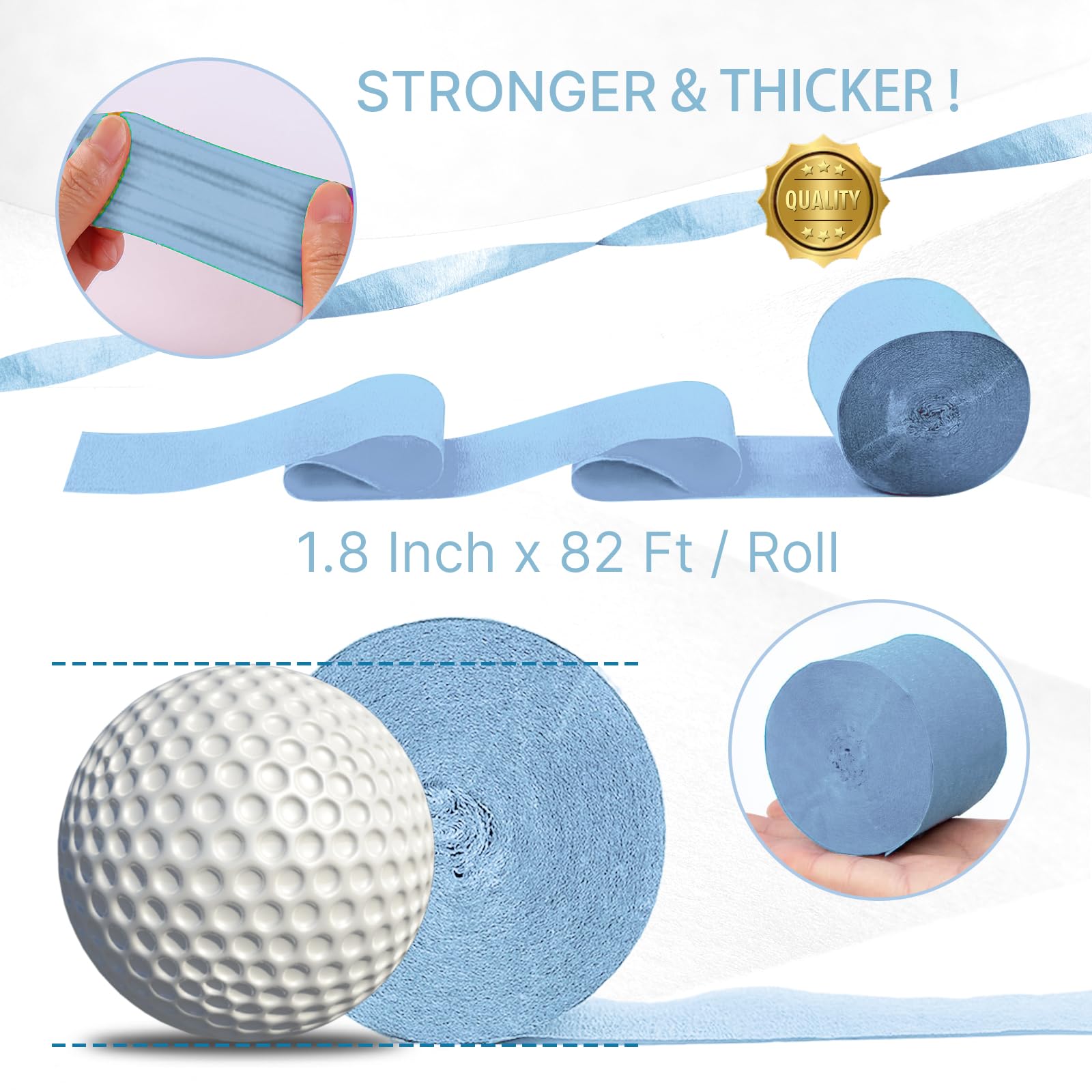 Package Included:You will receive 4 precisely rolled crepe paper in light blue colors, each roll is 1.8 inch x 82 ft, these crepe paper streamer rolls are enough for your baby shower decorations, wedding decorations and engagement decorations needs