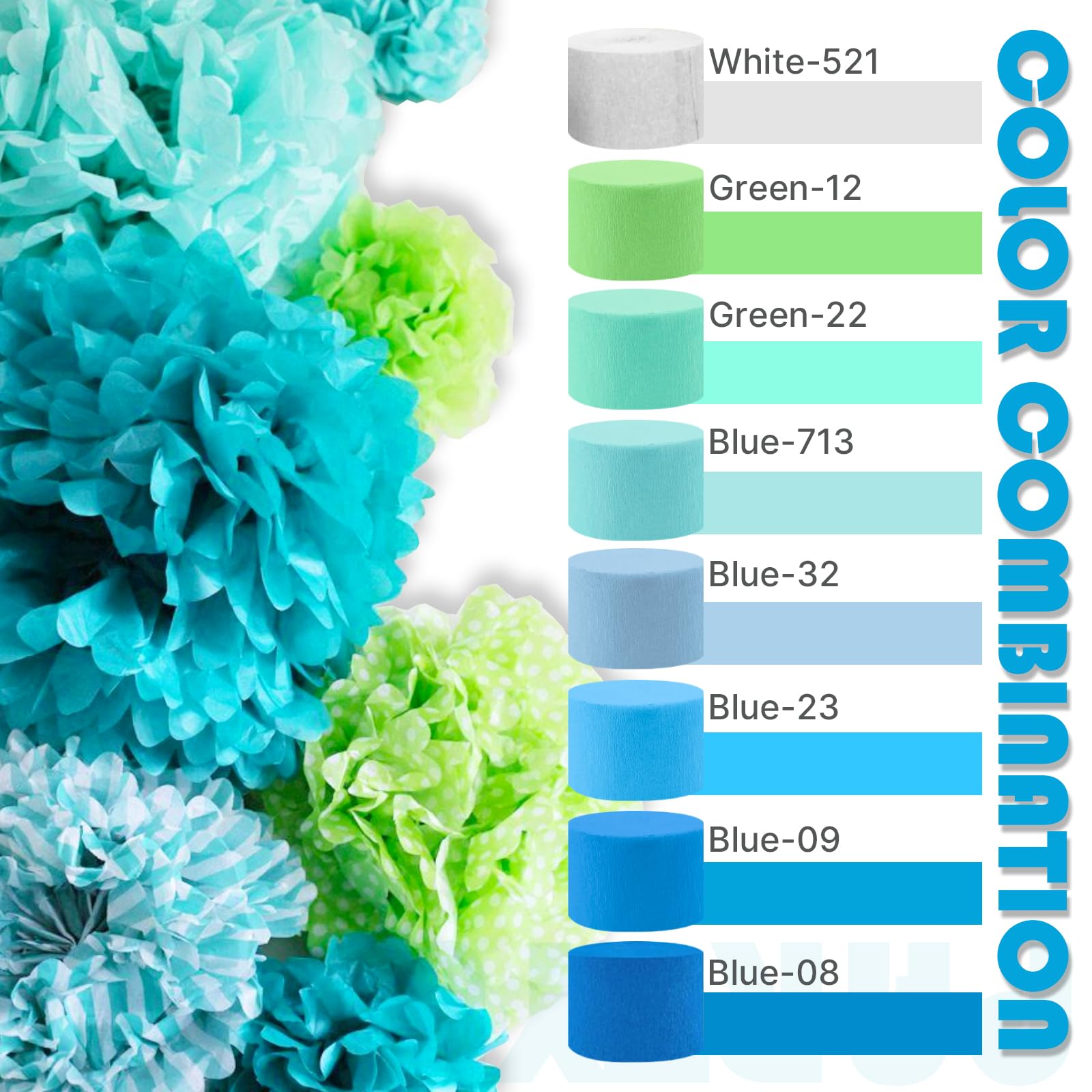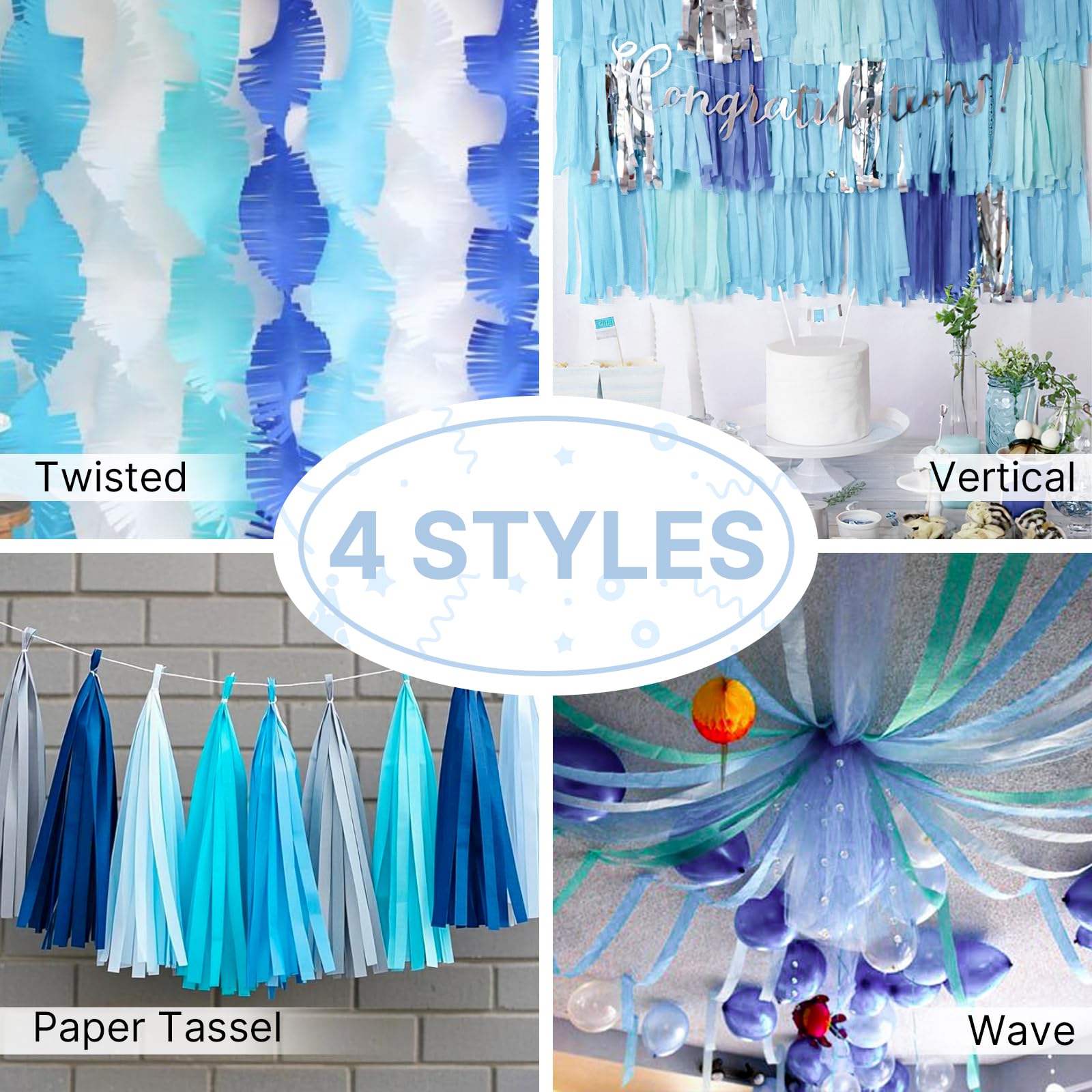Easy to Decorate:These light blue crepe paper streamers are easy to untie.You can twist paper streamers together into spirals, Use the crepe paper roll for backdrop, match different colors to give your baby shower or birthday a customized look