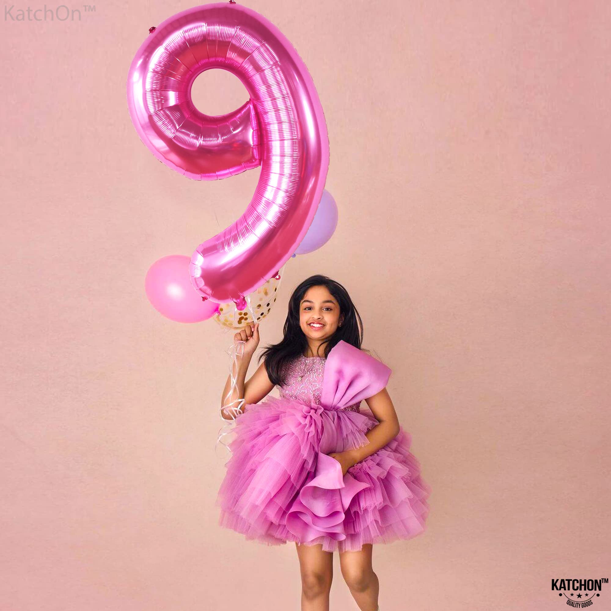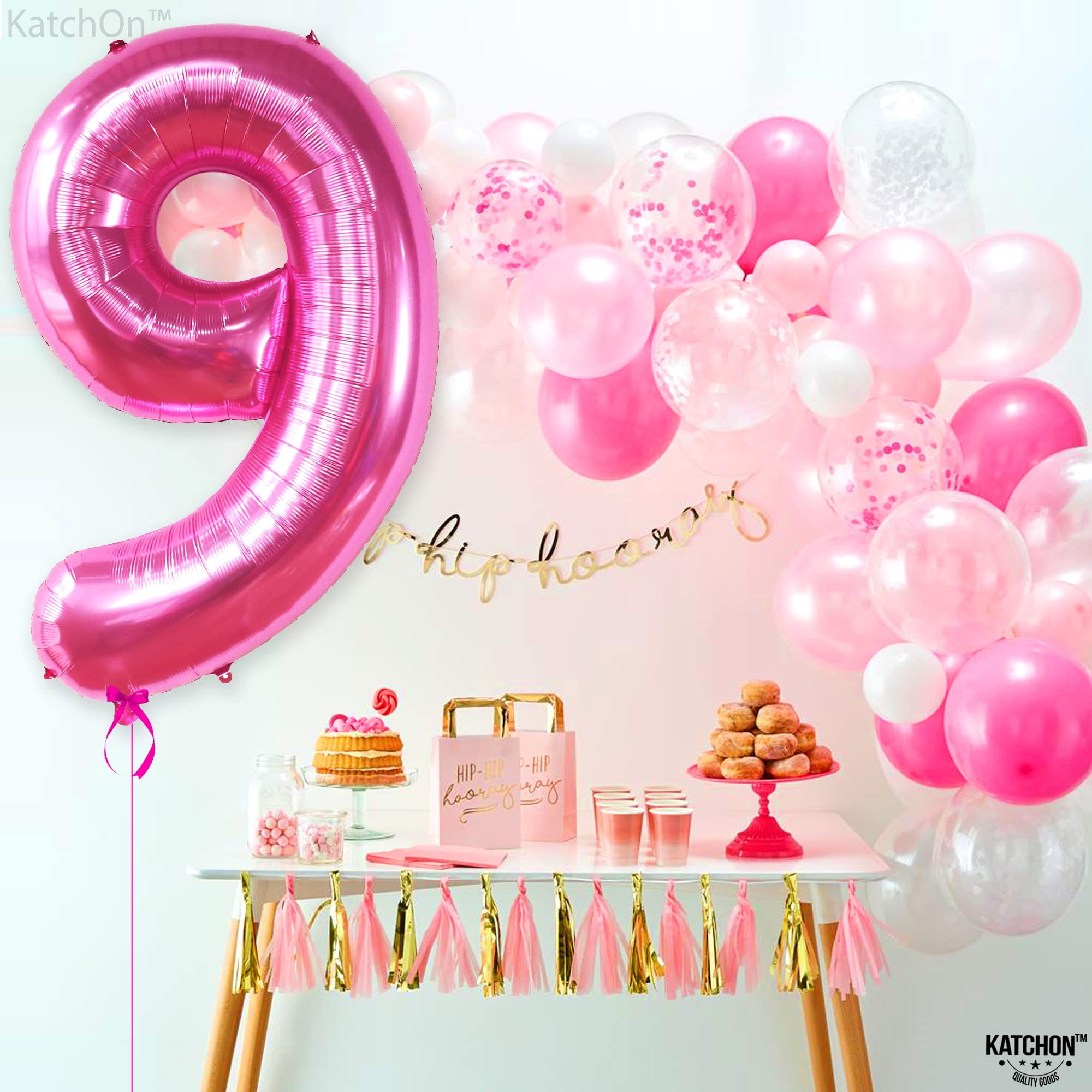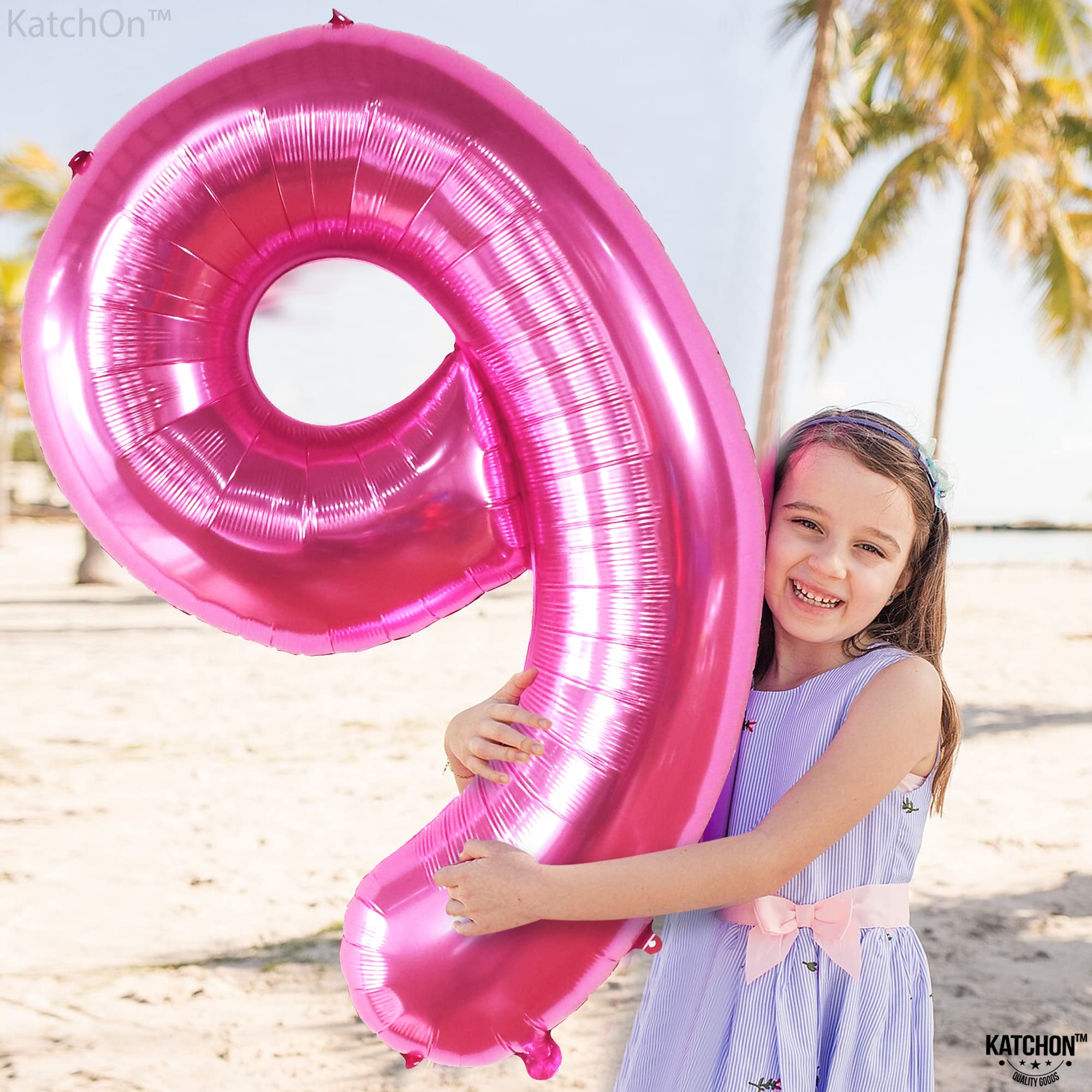 LARGE SIZE - 40 INCH | BEAUTIFUL HOT PINK BIRTHDAY BALLOONS - This Hot Pink 9 Balloon 40 inch is the party complement you shouldn’t miss. Add a great impact to your decoration it comes with this 40-inch Huge Number 9 Balloon Pink Mylar Foil Balloon, 1 Pink Ribbon and 1 Straw. Pair girl 9 birthday decorations with other pink number balloons for Pink birthday party decorations, anniversary. Use this Hot Pink Pink 9 Balloon, for Birthday Party Decorations for girls 9 years.