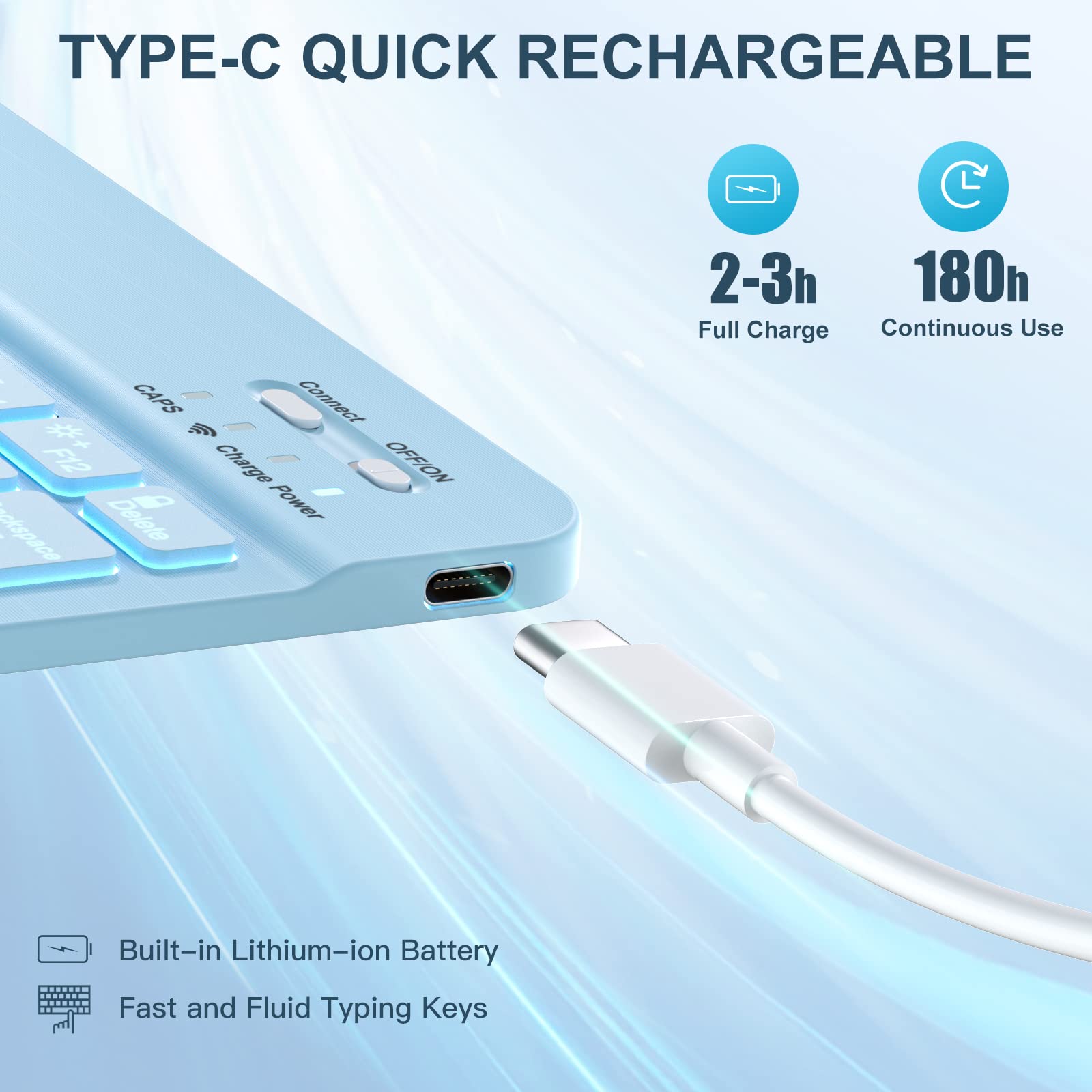 ❤【Long Life Battery Rechargeable Keyboard】The Harvopu wireless keyboard for iPad air 11 M3/ M2 & air (4th, 5th gen - 2020, 2022) built-in 400mAh high capacity lithium-ion battery with energy-saving mode, which worry-free use and long standby time. The Type-C charging port of keyboard charges faster, only 2-3 hours full charge. Suitable for home, office or school use and convenient for on the go studying and working