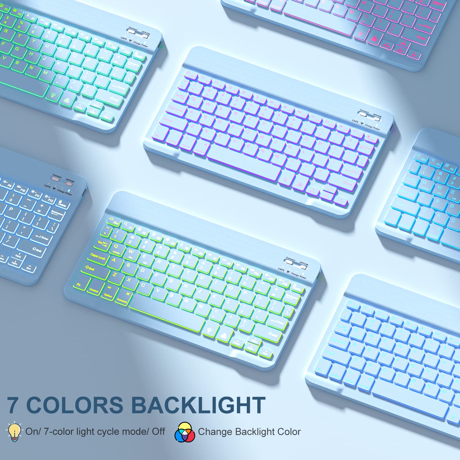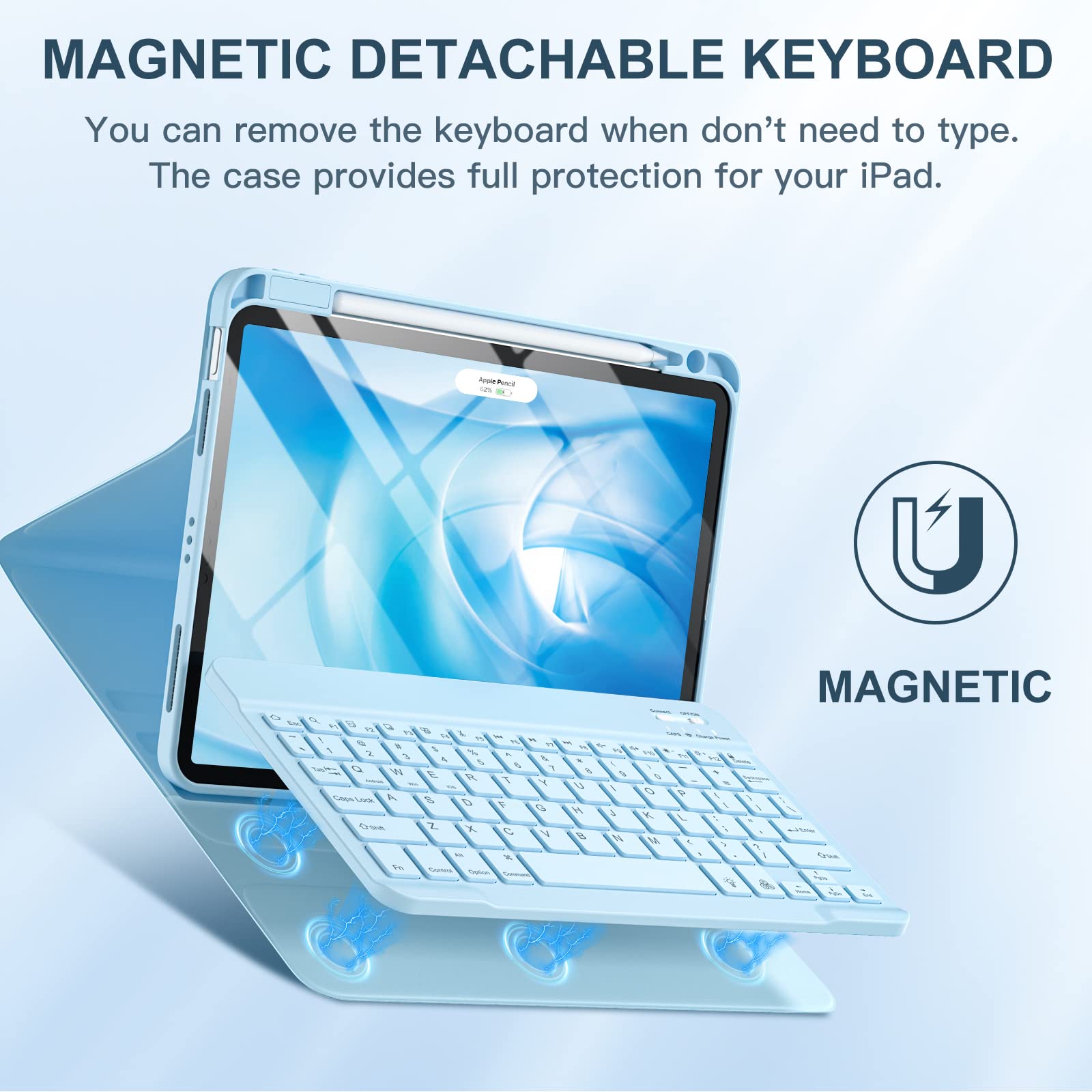 ❤【Detachable Backlit Keyboard】The keyboard for iPad air 5/4 generation can be attached to the case with pretty strong magnets or detach completely. It is easy, fast and stable to connect via BT, reconnect immediately when turning it on. Using the optional backlight mode one color at a time or 7 colors breathing backlight, Picture yourself typing smoothly in the dark even at night for work