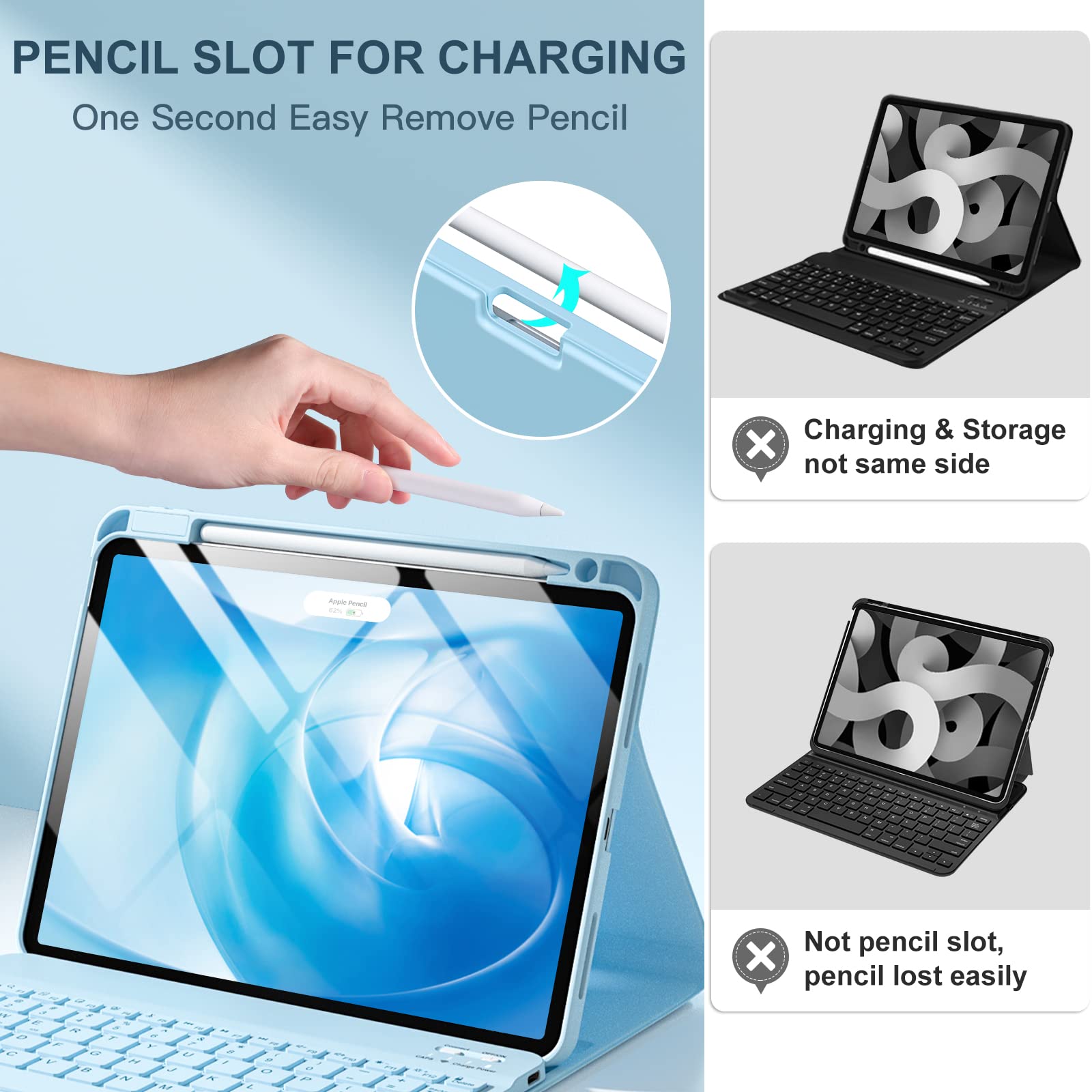 ❤【Support Charging Pencil Holder】The keyboard case built-in pen tray to hold your Apple Pencil so that don't worry about not finding your pen anymore. Moreover It charges directly and don’t have to take case off if you place the 2nd Gen Apple Pencil or New Apple Pencil-Pro