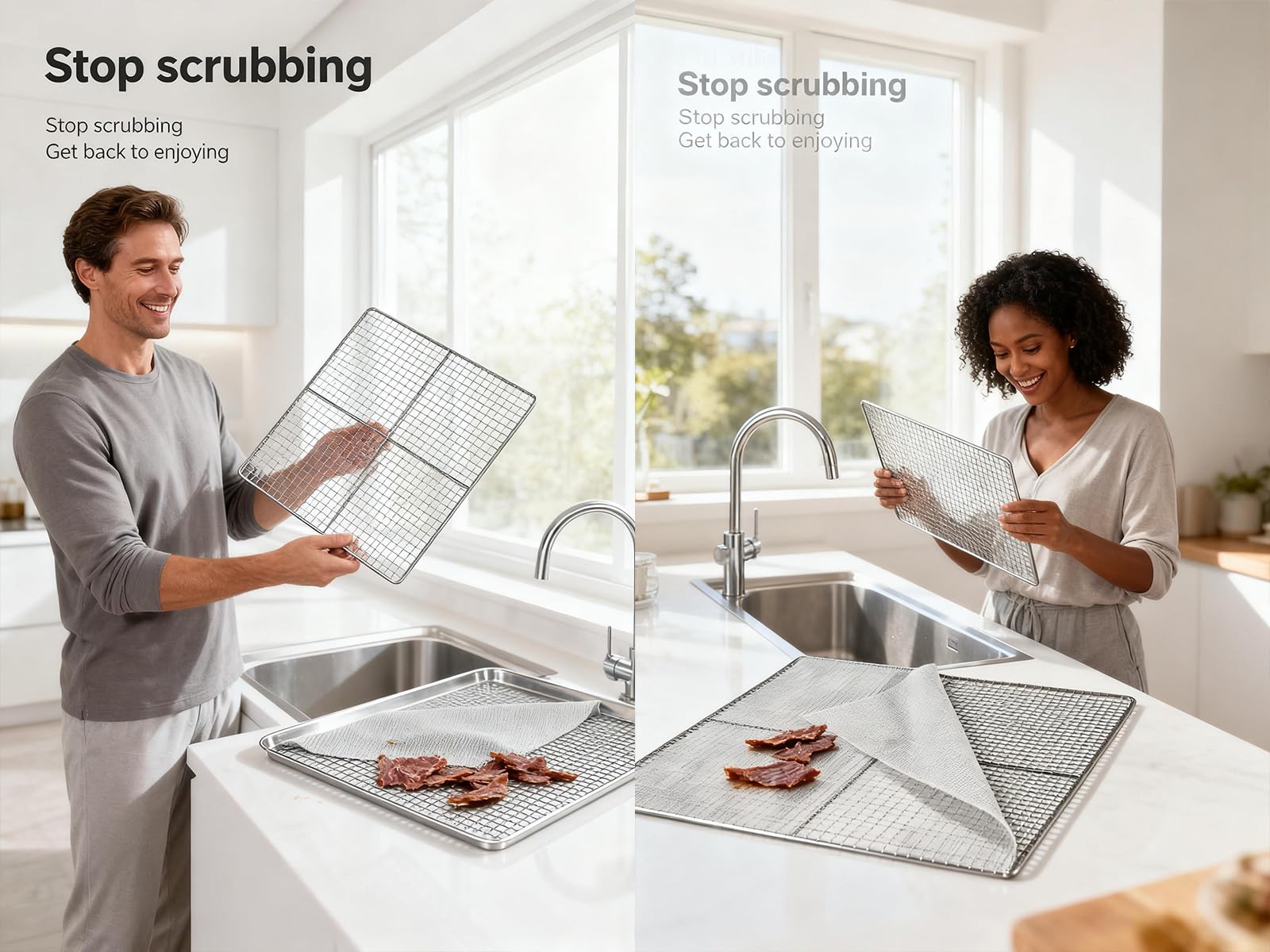 BPA-Free: The Surface Of The Dehydrator Sheet Is Coated With Food Grade Silicone, Which Has Excellent Non-stick Properties. It Can Completely Avoid The Sticking Of Food Residues Such As Beef Jerky And Fruit On The Tray