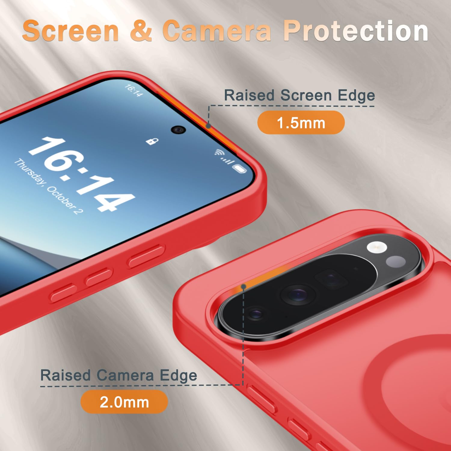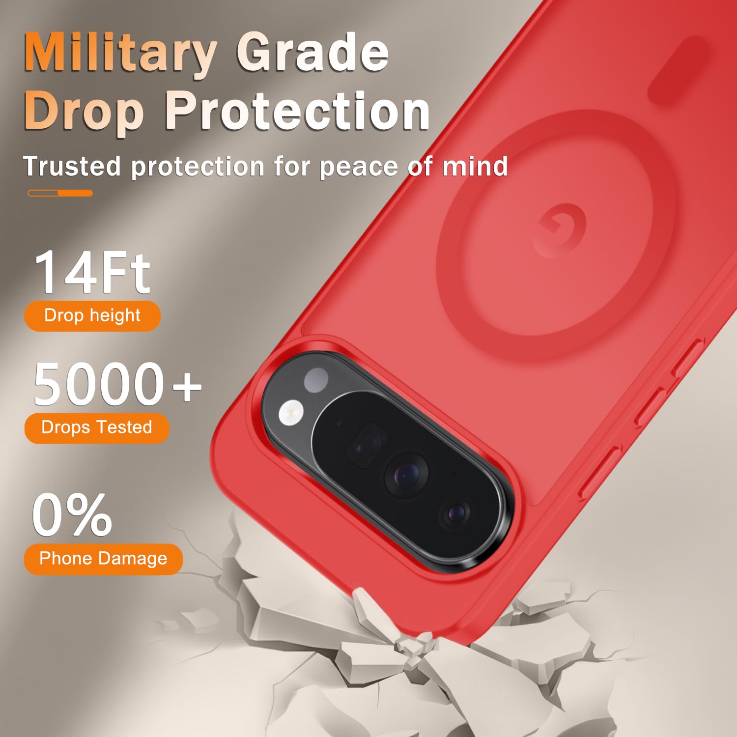 Trustworthy Protection : Experience Military Grade Full-Body Drop Protection with our case which Made from flexible TPU bumper and hard PC back. 4 airbags corners and 3-layer cushioning bumper ensure an optimal shockproof and anti-drop protection. Certified by the Military Standard,survived over 5,000+ drop tests from up to 14FT. 1.5MM raised screen edge and 2.0MM raised camera edge relieves impact, protects your touchscreen and lens against drops & cracks & surface scratches