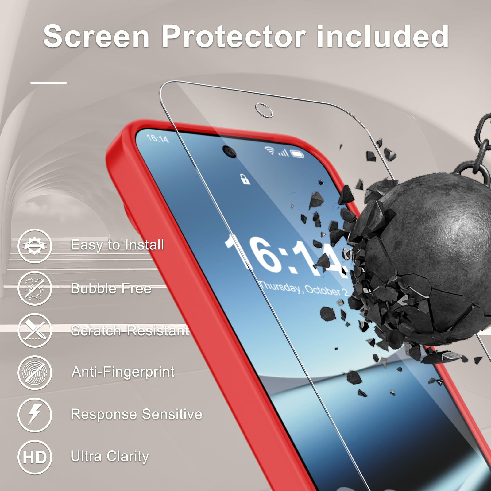 Screen Protector included : Come with 1 pack tempered glass screen protector. Easy to install without bubble. Protects your phone screen from scratch, shock, and impacts. Hydrophobic and Oleophobic Coating protect your screen from fingerprint marks and liquid residue. Maintains the Original Response Sensitivity, Ultra Clarity and fingerprint unlock