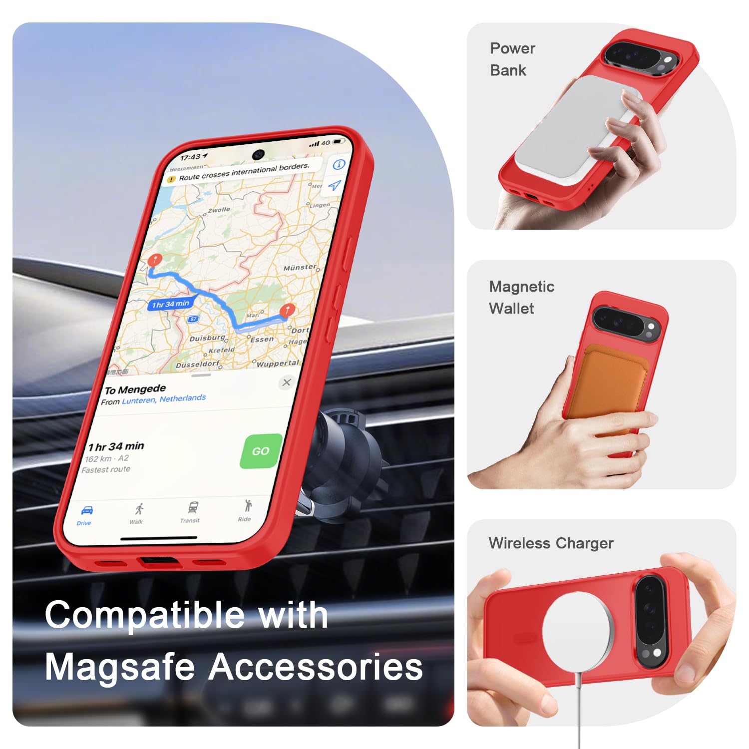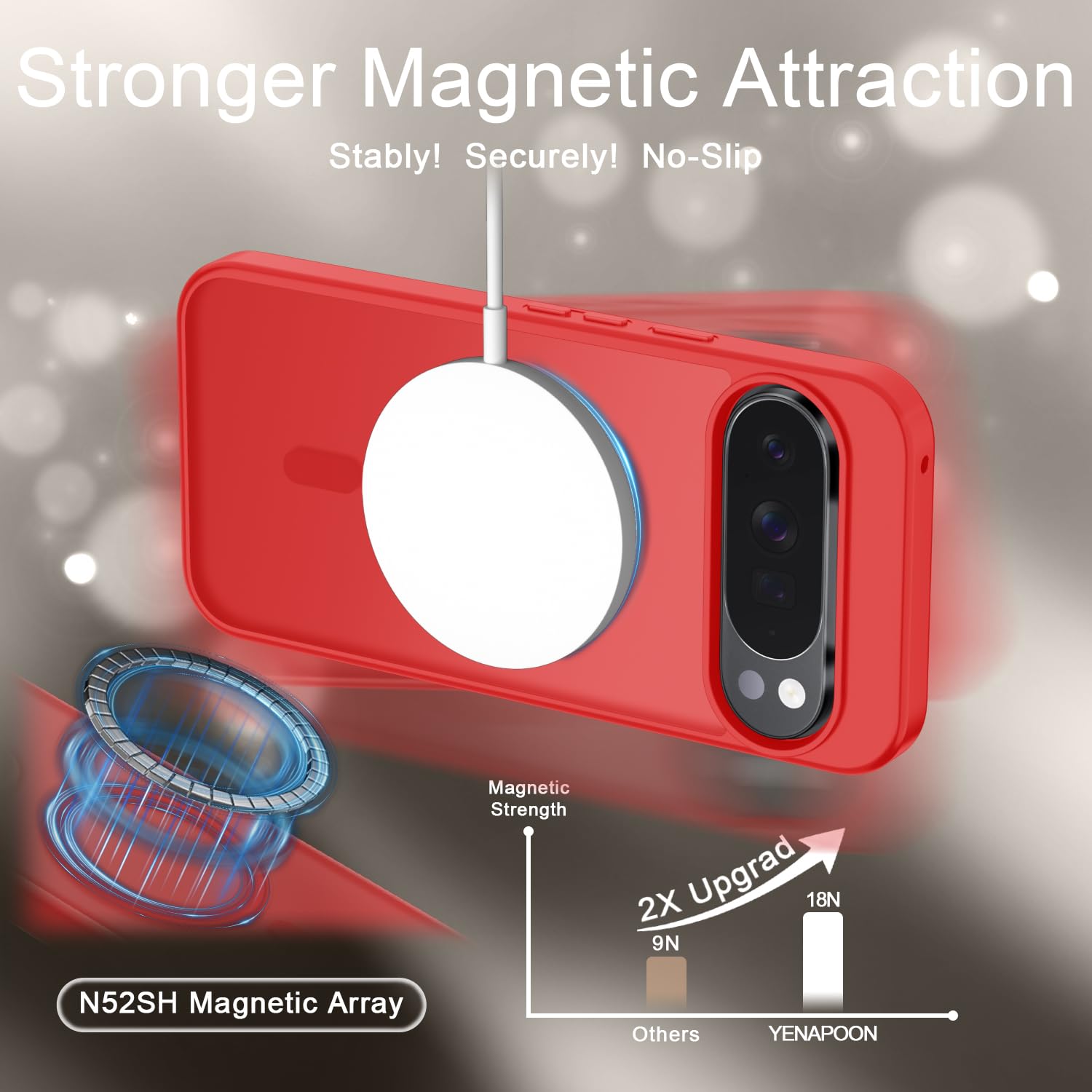 Compatible with Magsafe & Magnetic : The built-in array of 36Pcs N52 magnets perfectly aligned with the phone charging coils, better compatible with Mag-Safe chargers and magnetic battery banks, providing a more stable, compatible and faster charging experience. The magnets array provide a 18N strong magnetic power and 2400GS magnetism, make the case work together with magnetic accessories stably and securely, such as magnetic car mounts, holders, wallets and battery banks