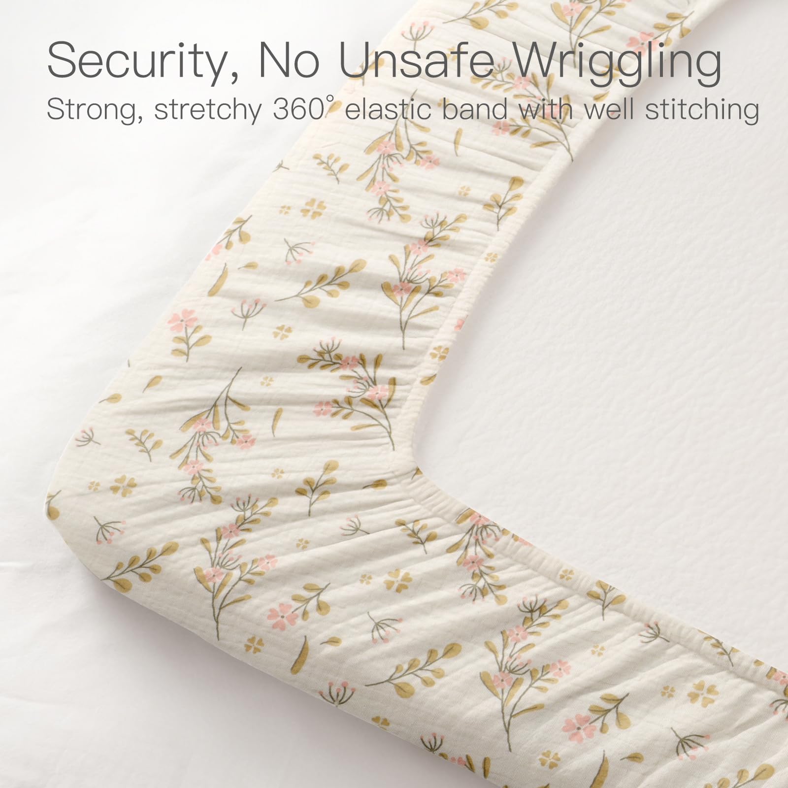 Luxuriously Soft and Breathable - Made from 100% organic muslin cotton, our bassinet crib sheet is pre-washed for ultimate softness and breathability. It stays soft and cozy after every wash, ensuring your baby's delicate skin is always comfortable, promoting a healthy sleep routine for better growth and development.