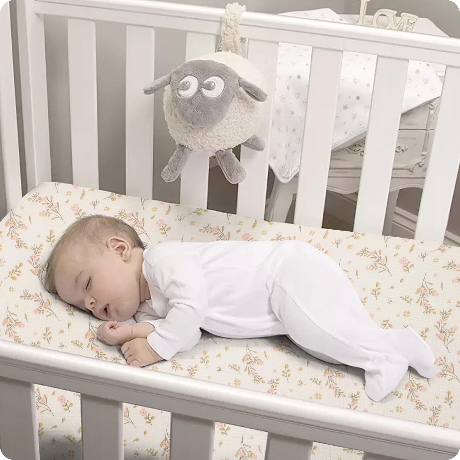 Safe and Secure Fit - Our bassinet crib sheet features an elastic band all around the entire edge for a snug, secure fit. Flexibly fitting 28" x 52" standard crib and toddler bed mattresses, our crib sheets have 9" (22cm) deep pockets for a tight and safer fit. It is safer and more comfortable for babies to sleep, even when they roll or crawl on the mattress.