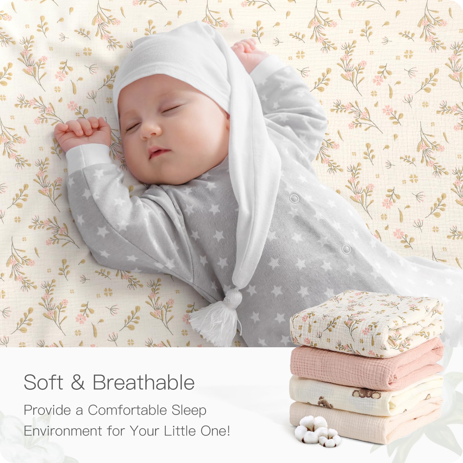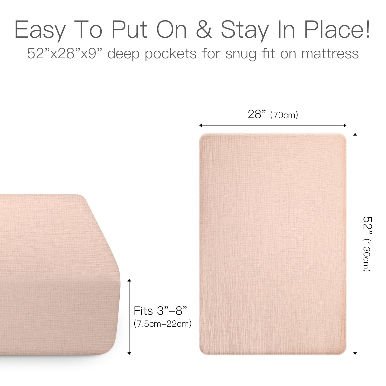 Easy to Clean & Maintain - Our mini muslin crib sheets sport a double-layer fabric that ensures durability, making them machine washable and dryable. They also have pre-shrunk technology, which provides a better washing experience with lower shrinkage than similar products. It's a great convenience for all the busy parents out there.
