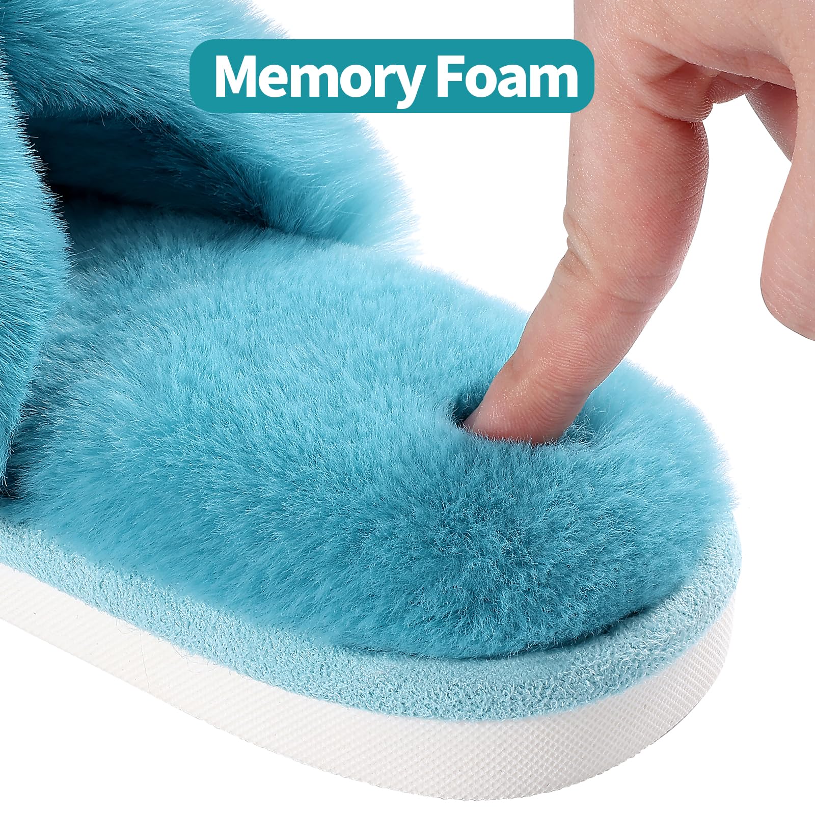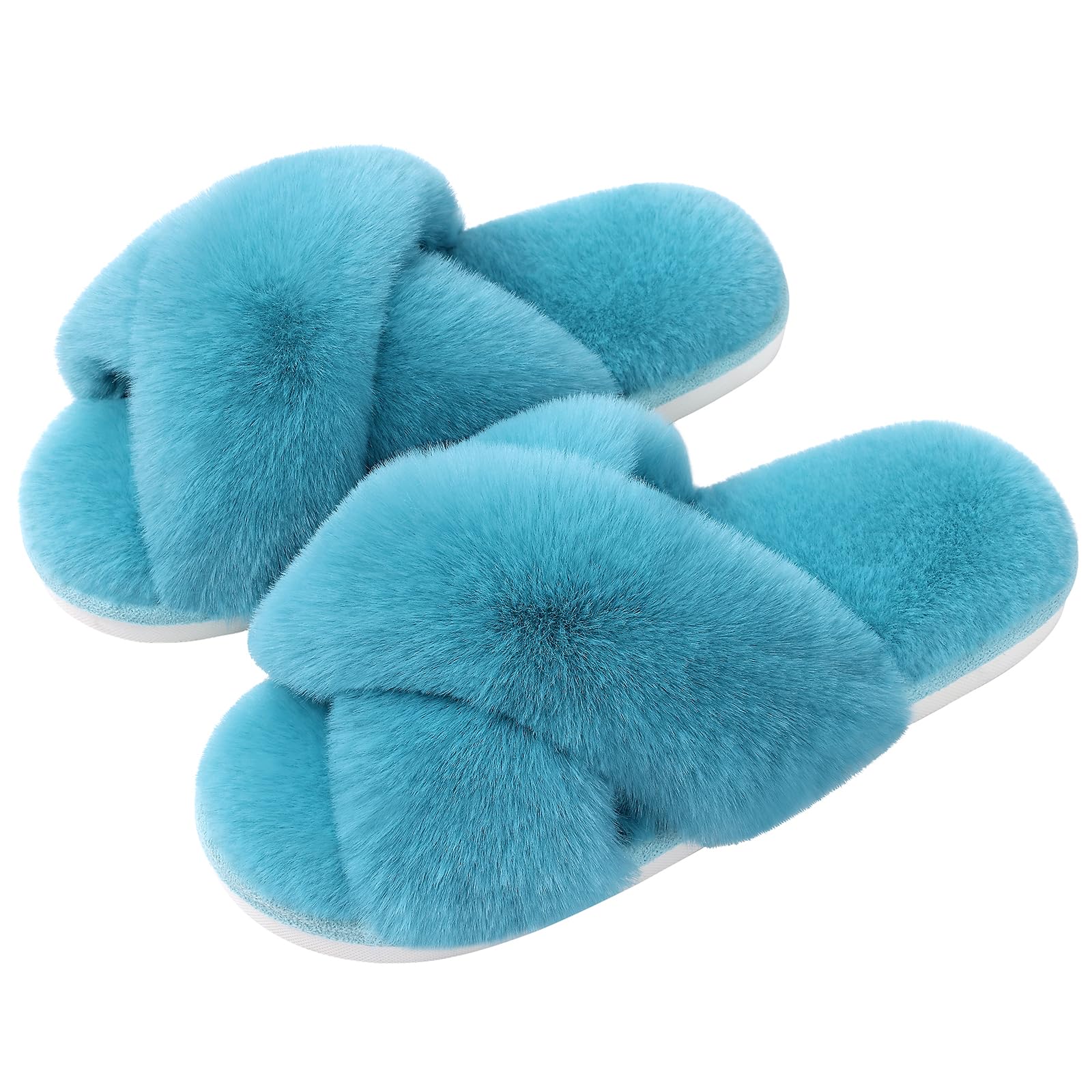 FUZZY HOUSE SLIPPERS: Fuzzy faux fur upper and footbed surround your foot in cloud comfort, making your feet cozy. A good choice for reducing muscle fatigue after a long day of work.