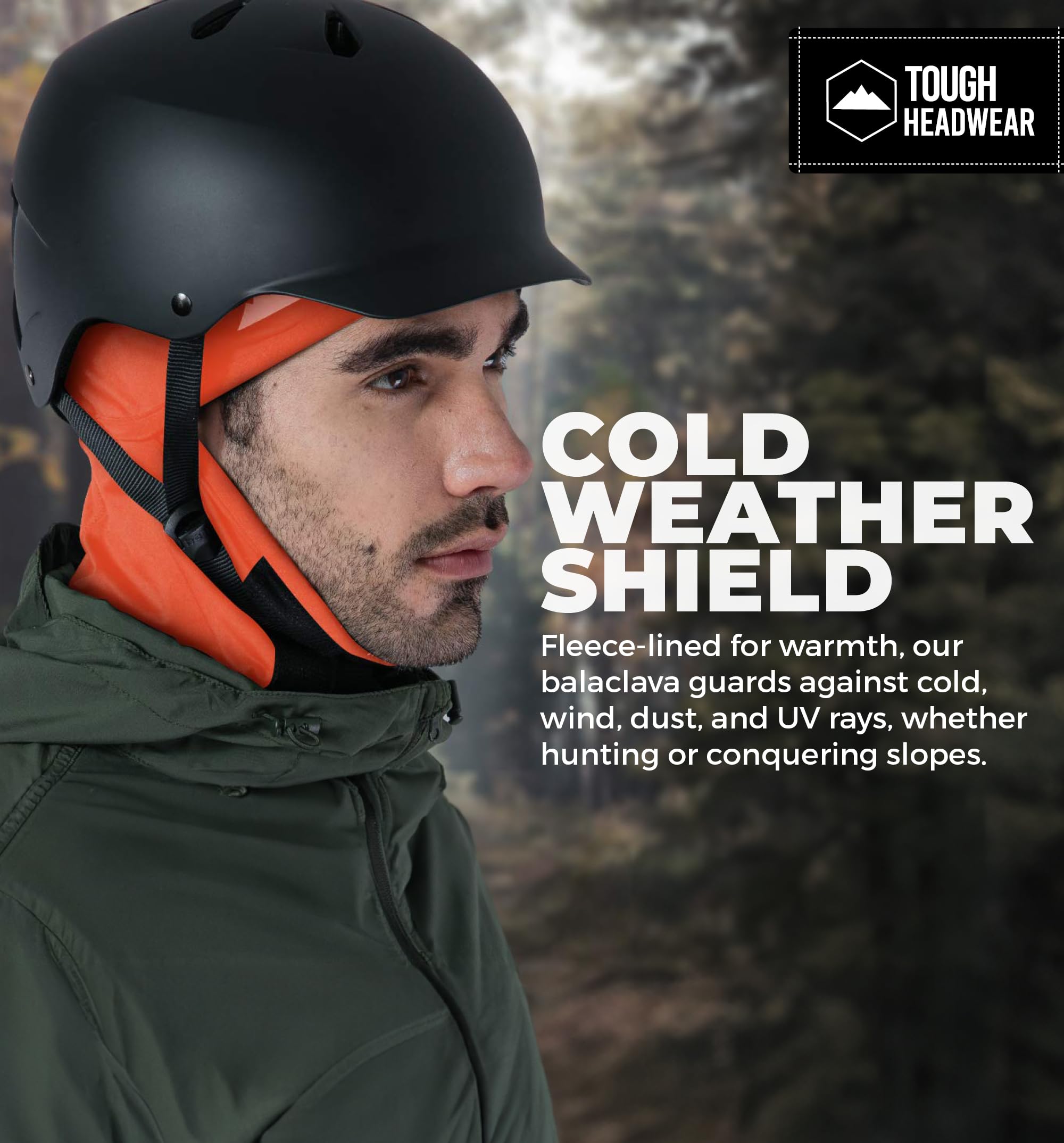 Ultimate Versatility: Wear your balaclavaits ownunder a helmet. Wearas a full face mask, open balaclava, half ski maskneck gaiter. Just dont wearinairportbank! People use our balaclavas for skiing, snowboarding, riding, ATVing, hunting, construction, warehouse work and shoveling snow.