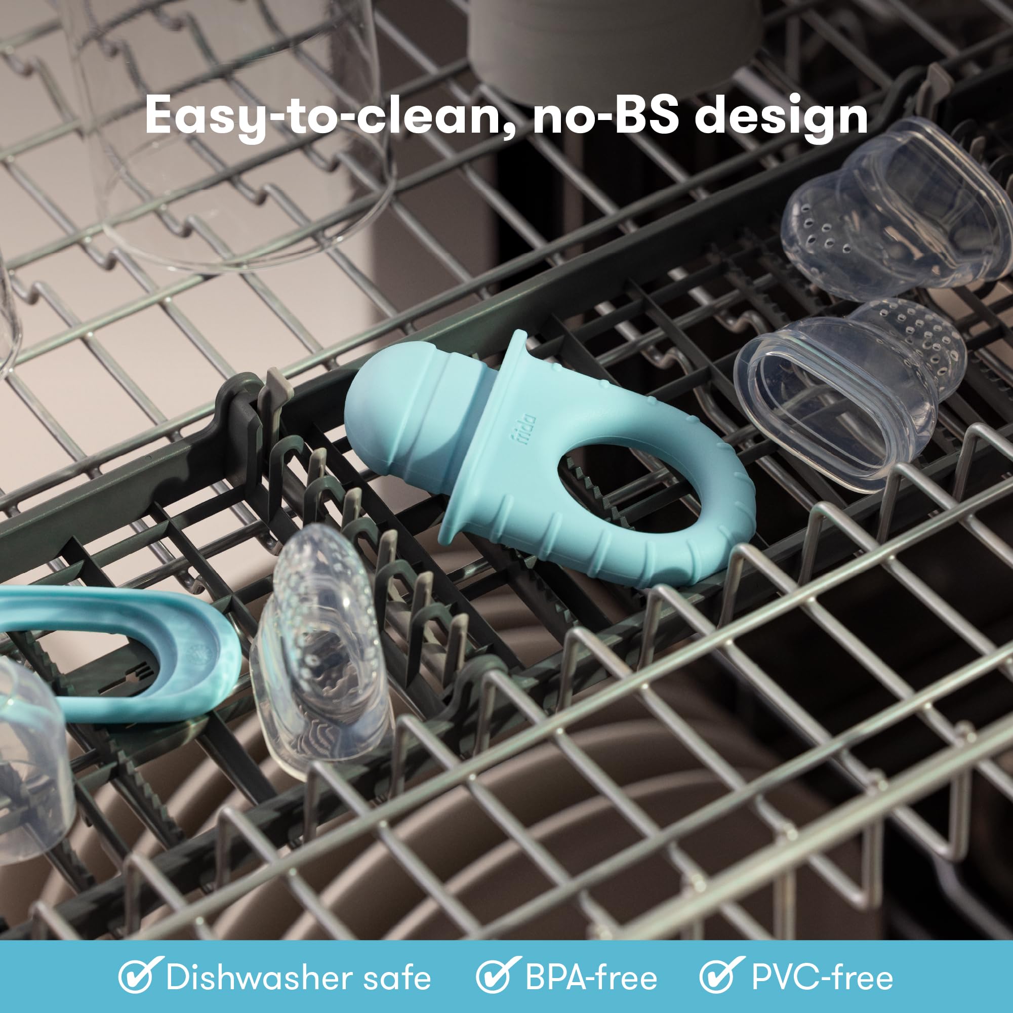FOOD INTRODUCTION: Fill the silicone feeder with fresh or frozen fruits, vegetables, yogurt, purees, breastmilk, or ice cubes. It's the perfect fruit teether for babies.
