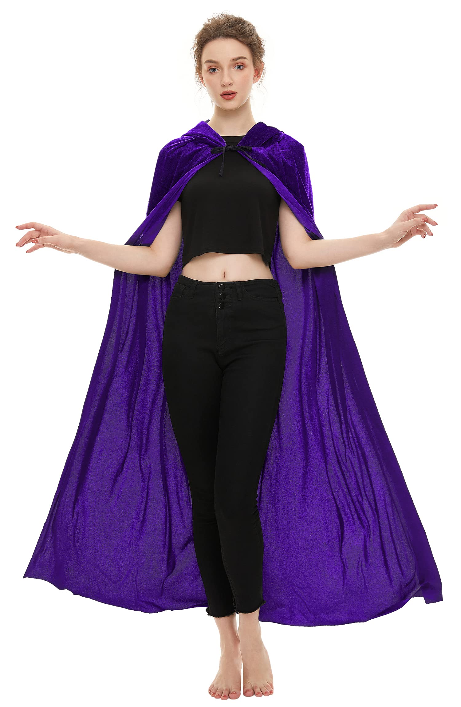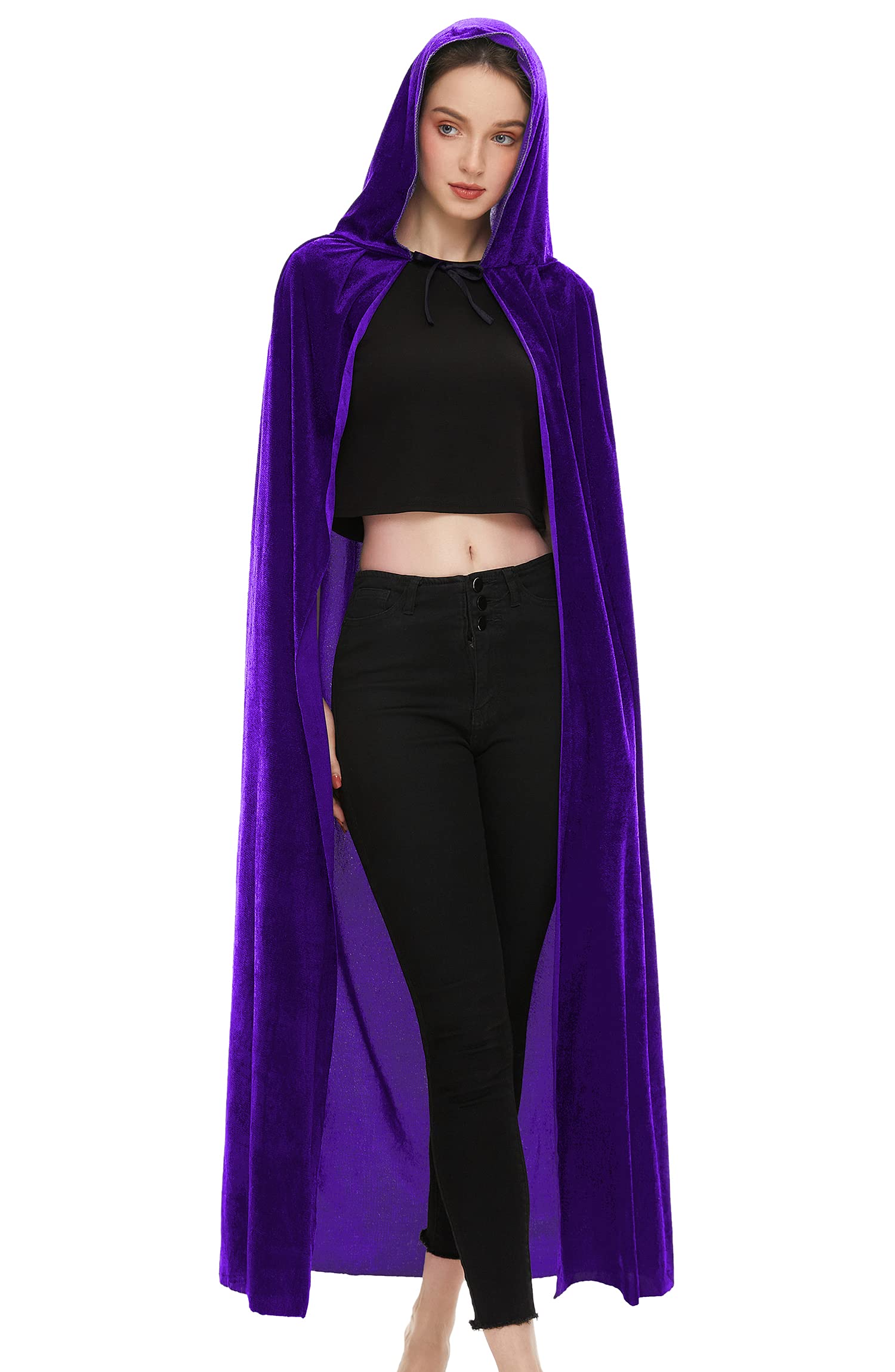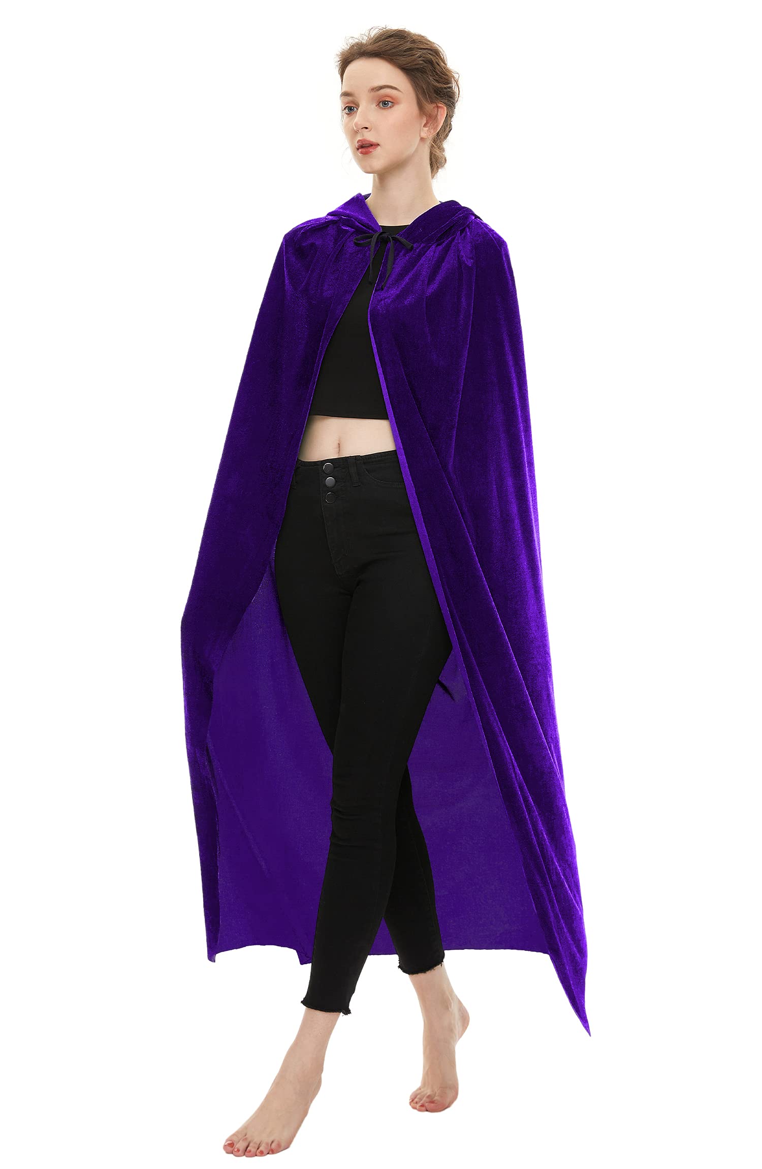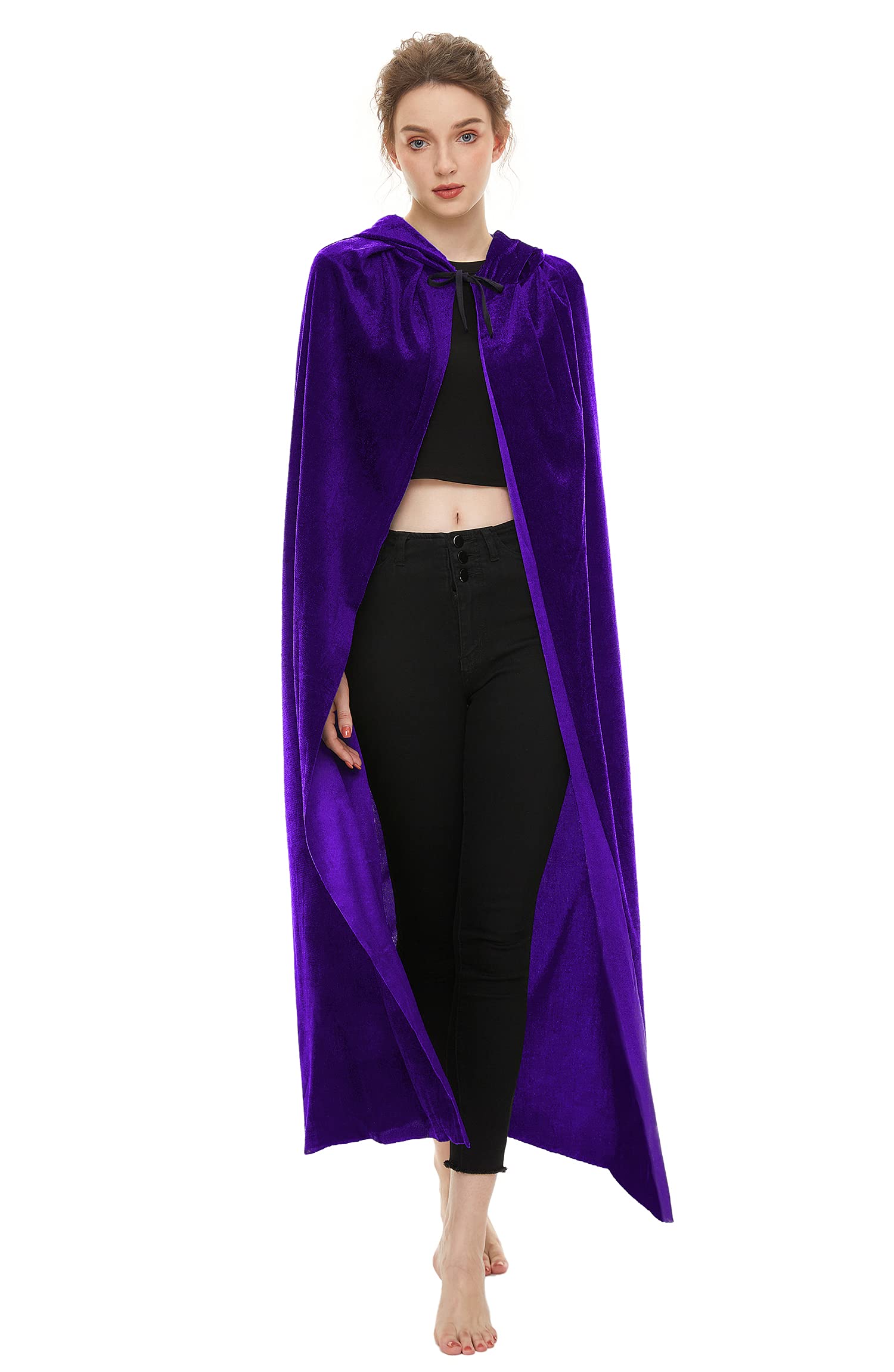 SISKIN Hooded Cloak Unisex Adult Cloak with Hood Halloween Christmas Velvet Hooded Cape Cosplay Costume for Women Purple
