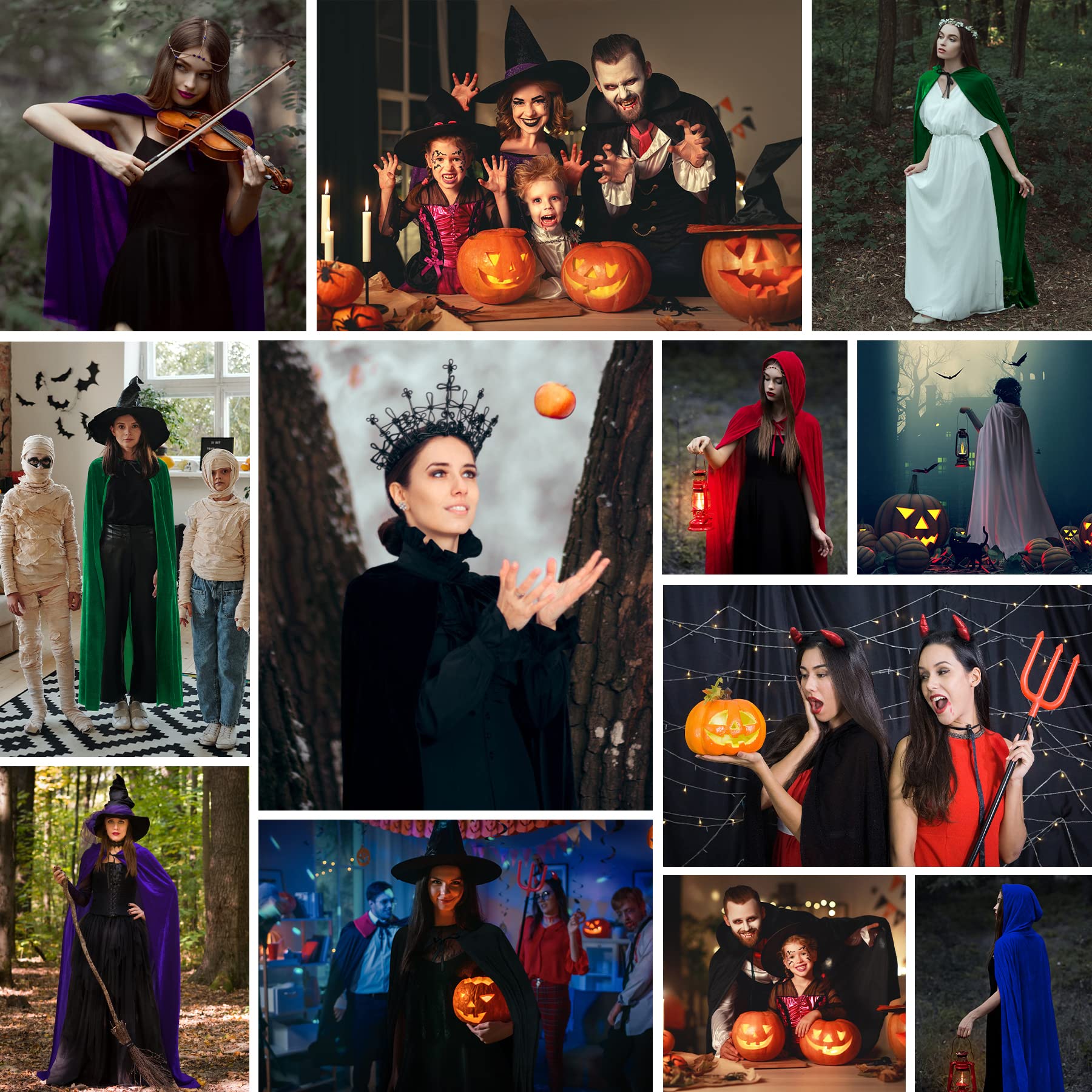 Full Length Witch Cape: The length from collar to hem is M(51.2"/130cm), L(59.1"/150cm), XL(66.9"/170cm). Full length wizard robe cloak / cape for adults generally used for both female and male, fits most dress-up occasions.