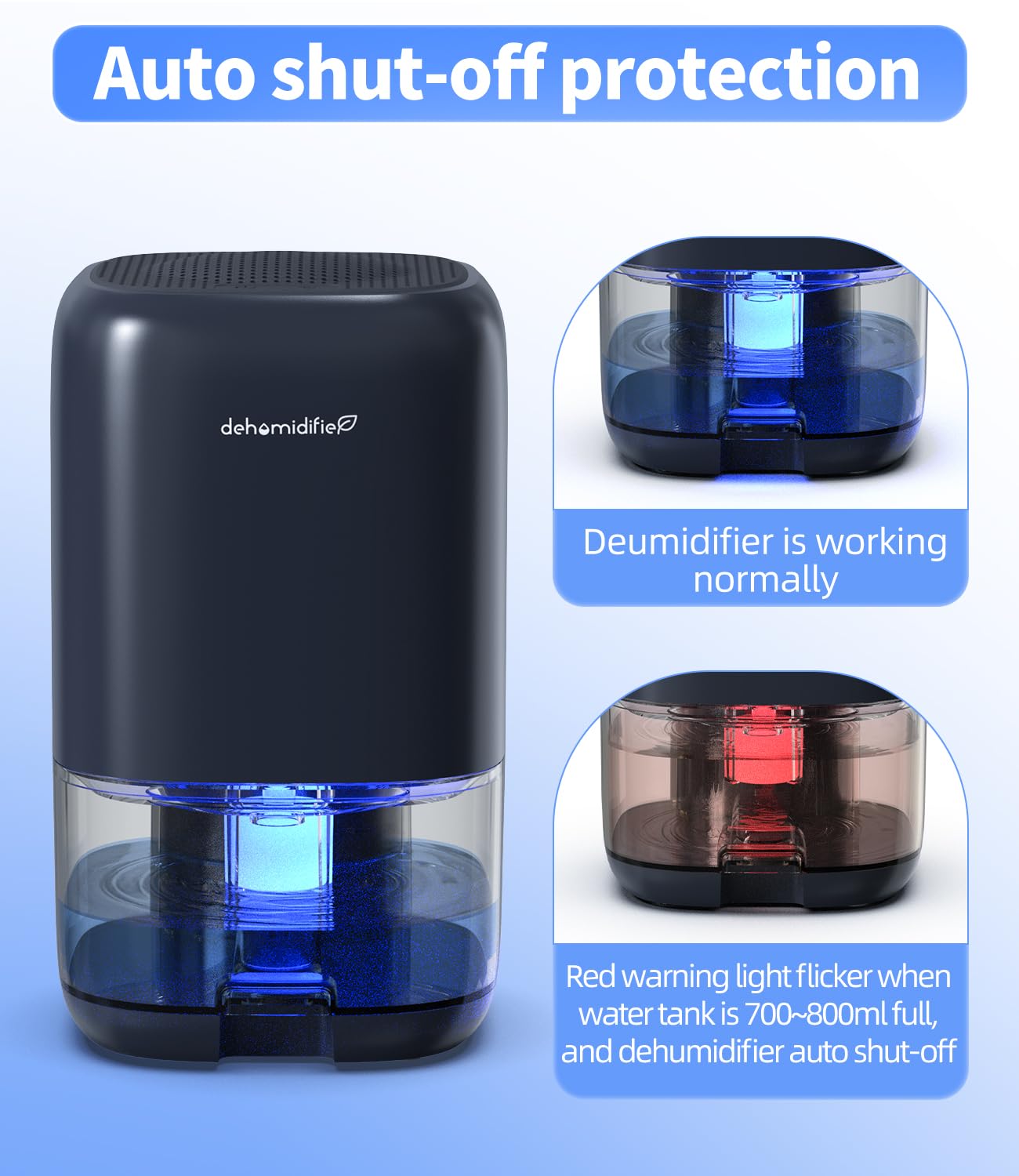 Auto Shut Off Protection: With our dehumidifiers, rest assured that when the water tank reaches 700 to 800ml, the unit will shut off automatically. A flashing red light within the tank serves as a visible alert. It is also very reliable and convenient to use when you are not at home