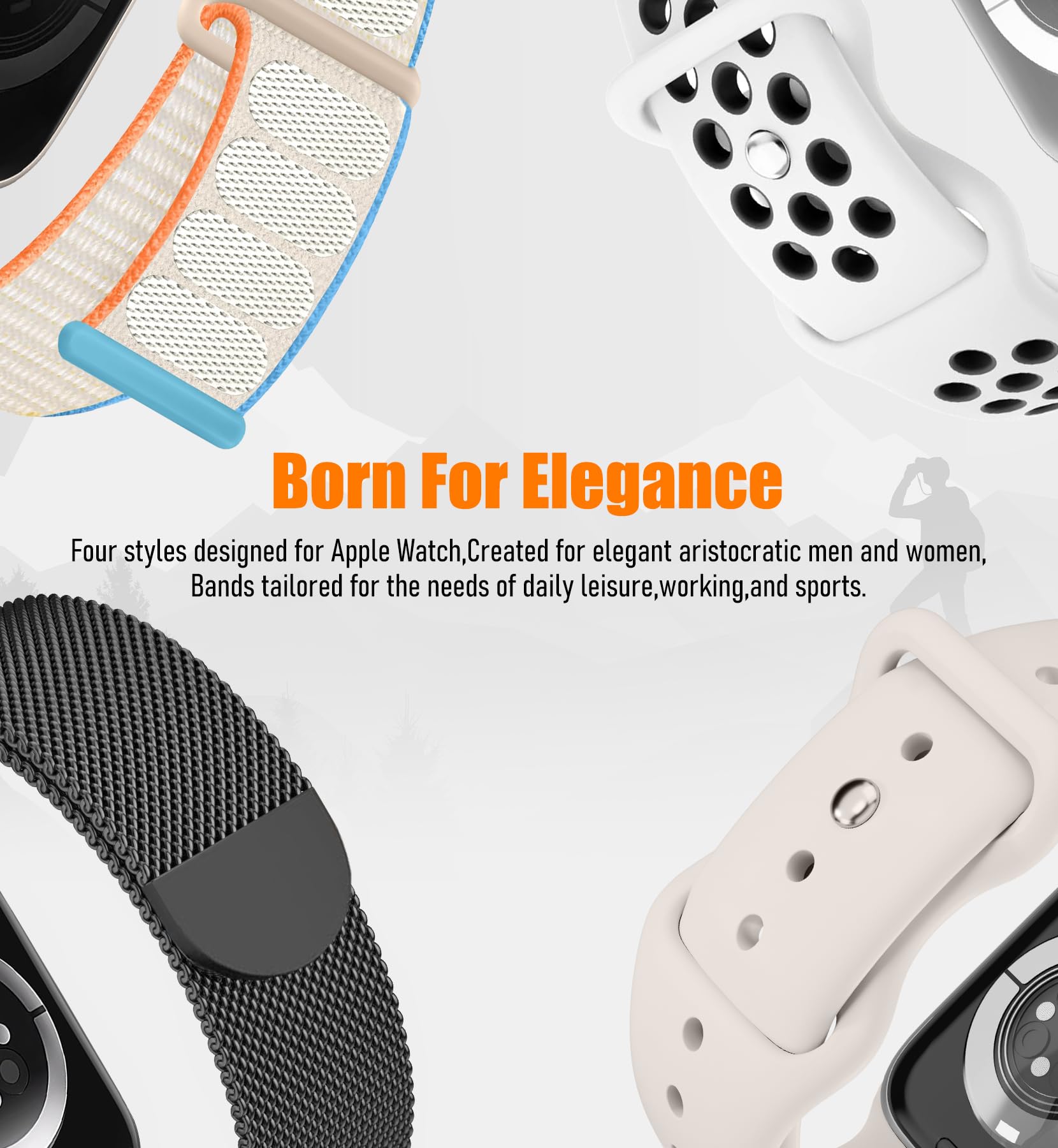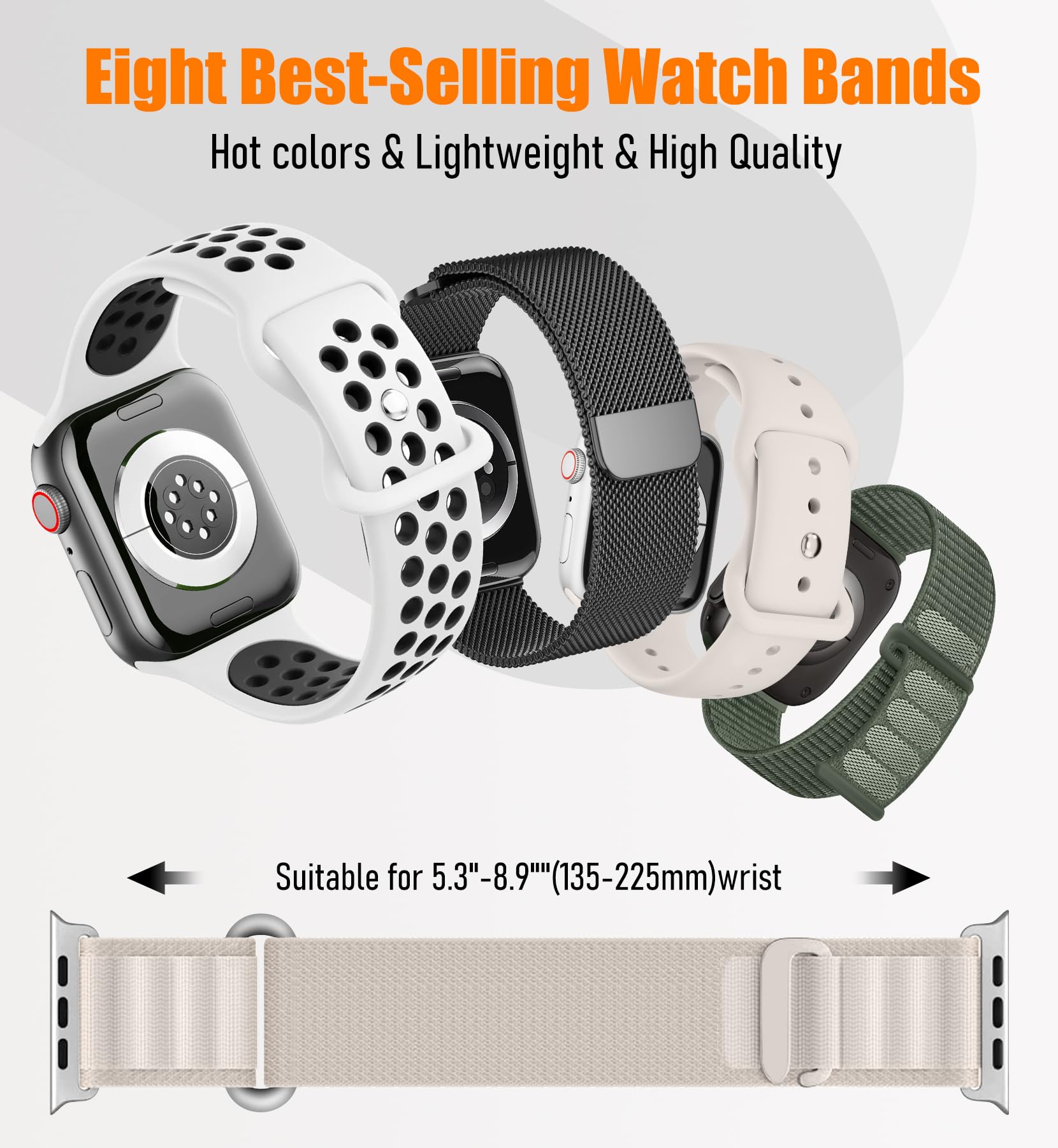 【Multiple Combinations】4 classic styles and 8 different straps to meet all your needs,Milanese loop uses a strong magnetic buckle, and the silicone strap adopts a sports buckle design,and the nylon strap adopts quick adhesion technology. adjust the length as your wish and which is strong and reliable.You don’t need to configure another strap for your apple watch