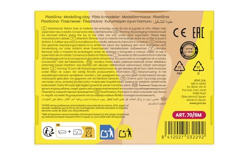 Premium non-drying modeling clay - vegetable-based non-hardening Modeling clay holds excellent detail. Jovi Clay is non-staining and features easy clean up. High volume and vegetable based - composed primarily of vegetable material, Jovi plastilina contains 33% more volume per ounce than mineral-based Modeling clay. Full range of colors - Box of 6 bars weighing 1.75 oz. each. Contains 6 colors. Premium European Quality - Jovi has been dedicated to producing outstanding creative products since 1939. Made in Barcelona, Spain, Safe for kids and adults - Jovi products are gluten-free