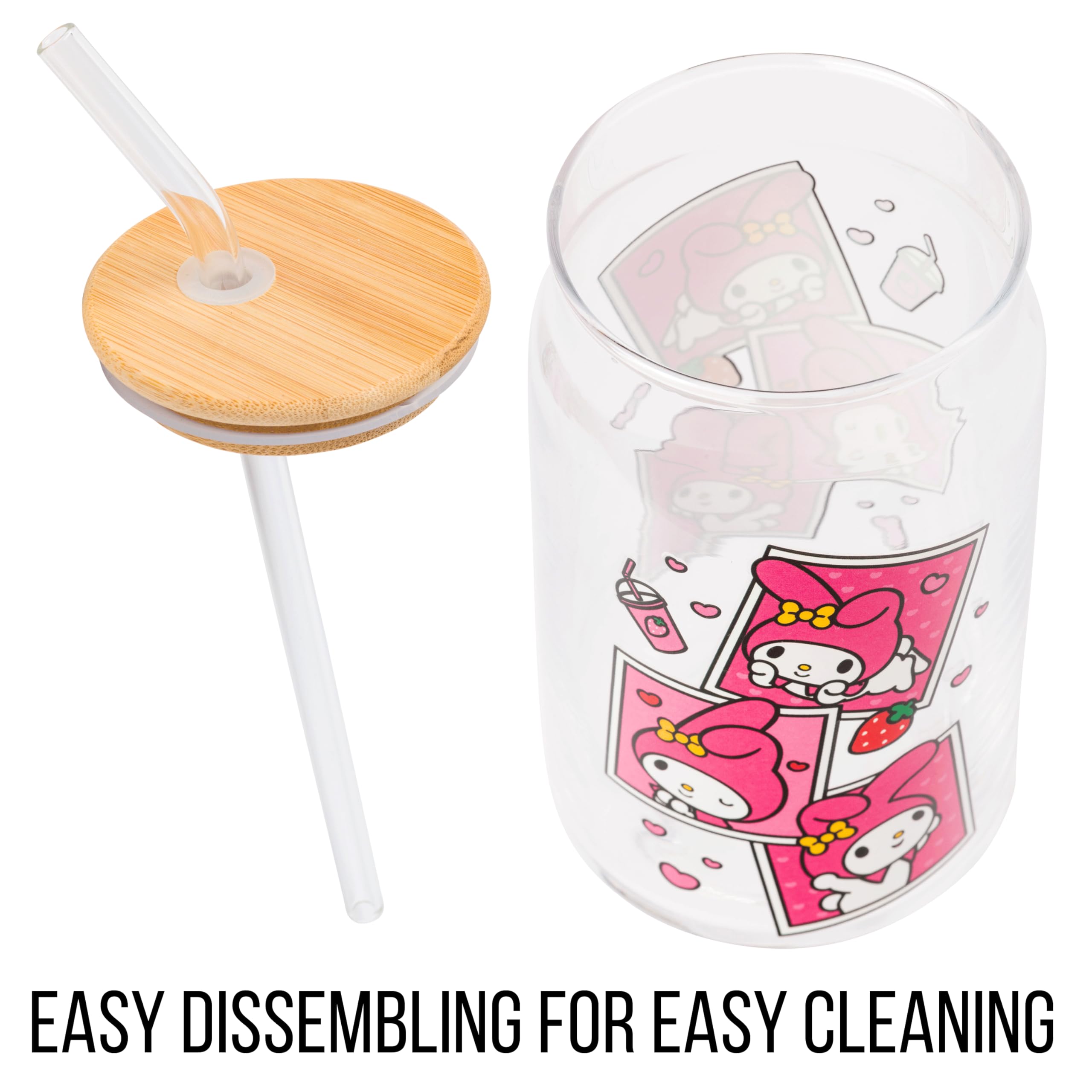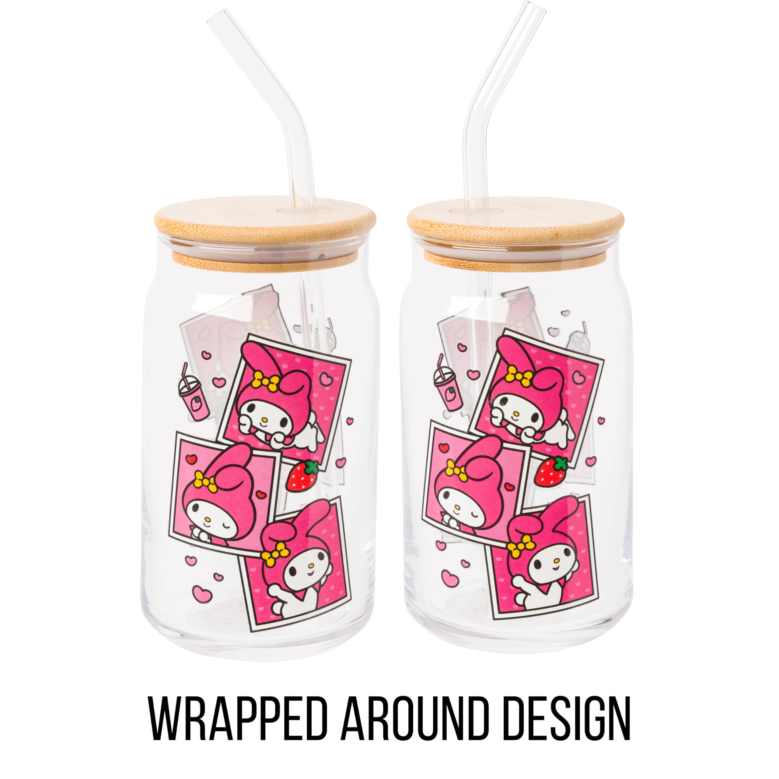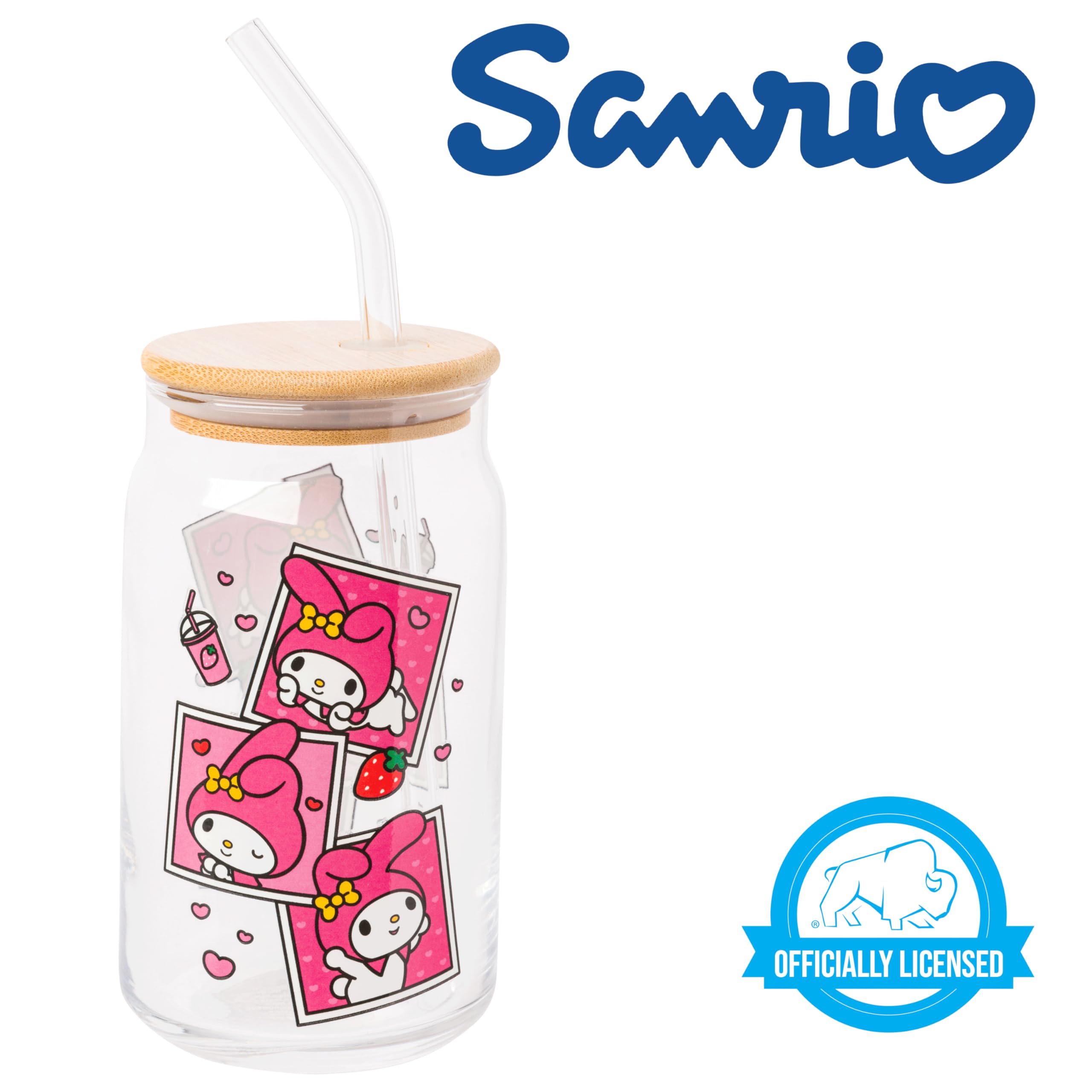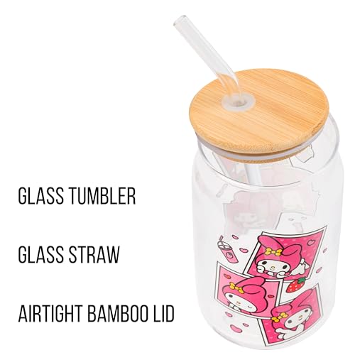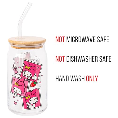 Quench your thirst with our Silver Buffalo My Melody Pink Snapshot Clear Glass Tumbler, a charming 16-oz companion adorned with the delightful My Melody character. Crafted with a bamboo lid and a reusable glass straw, this tumbler not only adds sweetness to your hydration routine but also promotes eco-conscious living. Perfect for life on the go, it holds 16-oz of your favorite beverage and comes with a secure bamboo lid to ensure mess-free sipping wherever you wander. With its charming design and practicality, this tumbler makes an ideal gift for My Melody fans of all ages. Whether it's for holidays, birthdays, or housewarmings, this delightful present is sure to bring smiles to My Melody enthusiasts everywhere. Show your love for My Melody in style with our delightful glass tumbler! HAND WASH ONLY. NOT MICROWAVE SAFE. Take your fan experience to the next level with Silver Buffalo, a brand dedicated to delivering cherished official character merchandise. Through collaborative efforts, we pioneer unique, creative, and groundbreaking products, with detail and innovation. At Silver Buffalo, our pride lies in crafting extraordinary, playful items that forge a connection between fans and their beloved characters, superheroes, movies, TV series, and beyond. Celebrate your fandom!
