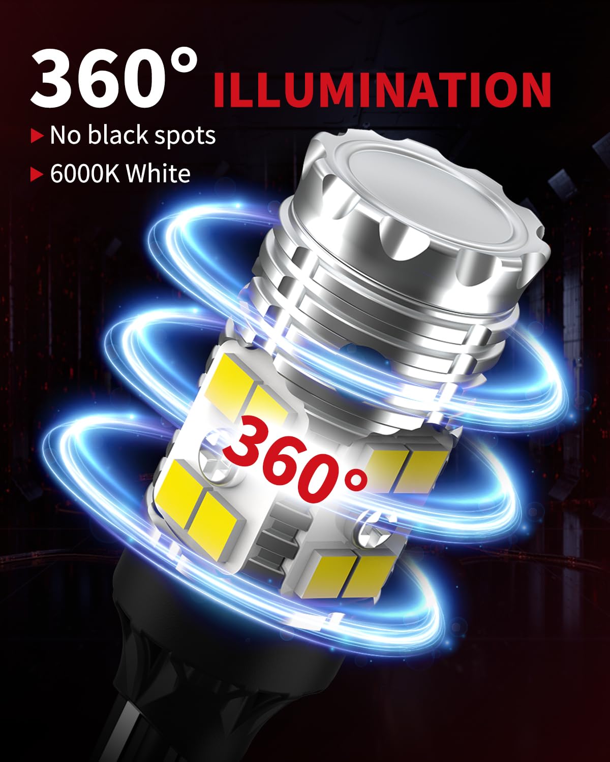 Upgraded Brightness for Better Visibility: Much brighter than halogen and standard 921 bulbs, delivering 15W 1500lm per bulb. Directly compatible with 906, 902, 904, 912KX, 912K, 921K, 921KX, 921LL, W16W, 912, 921, and Silverado 1500 2500 3500 HD(2014-2025)