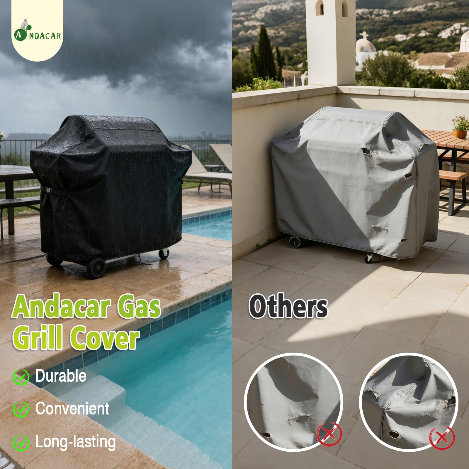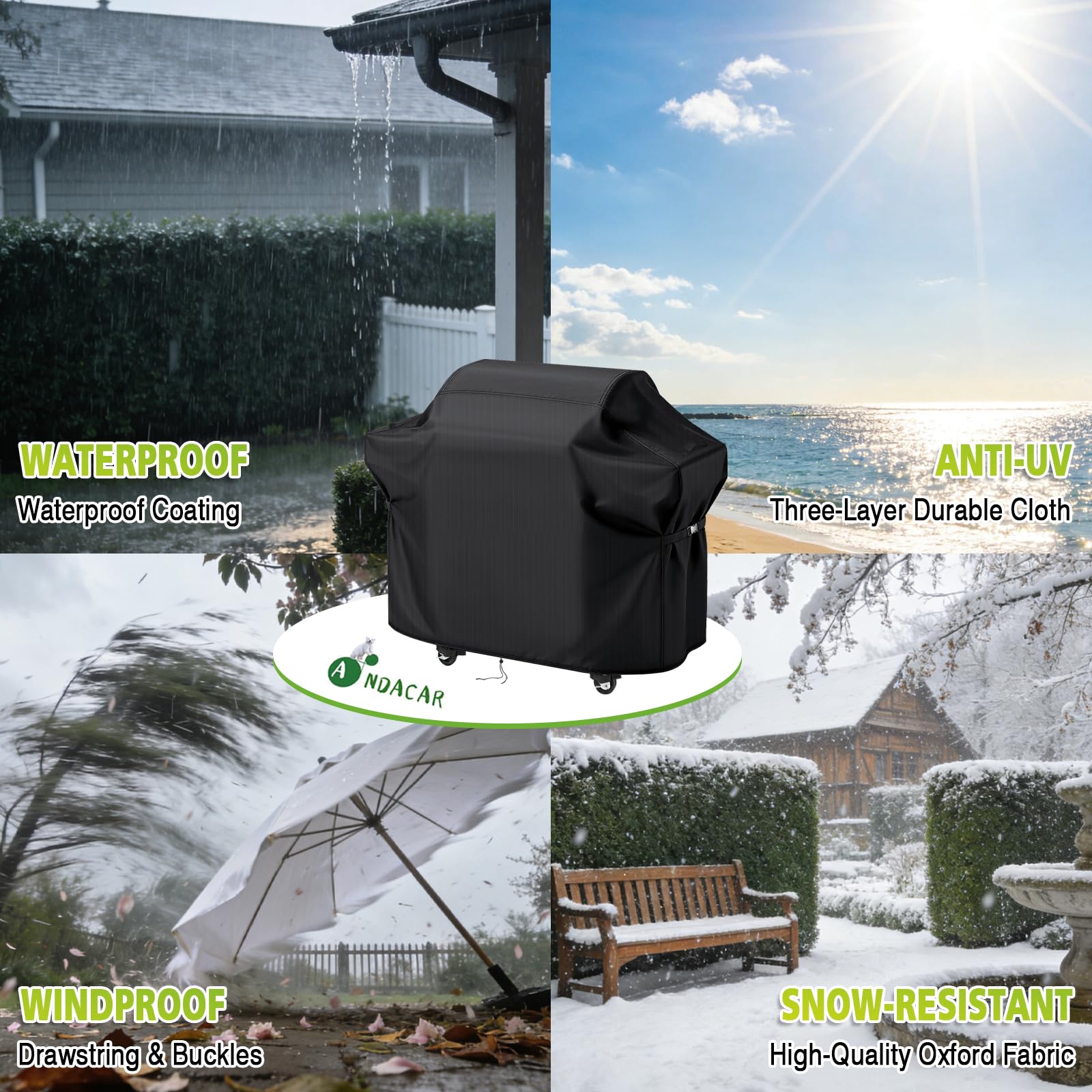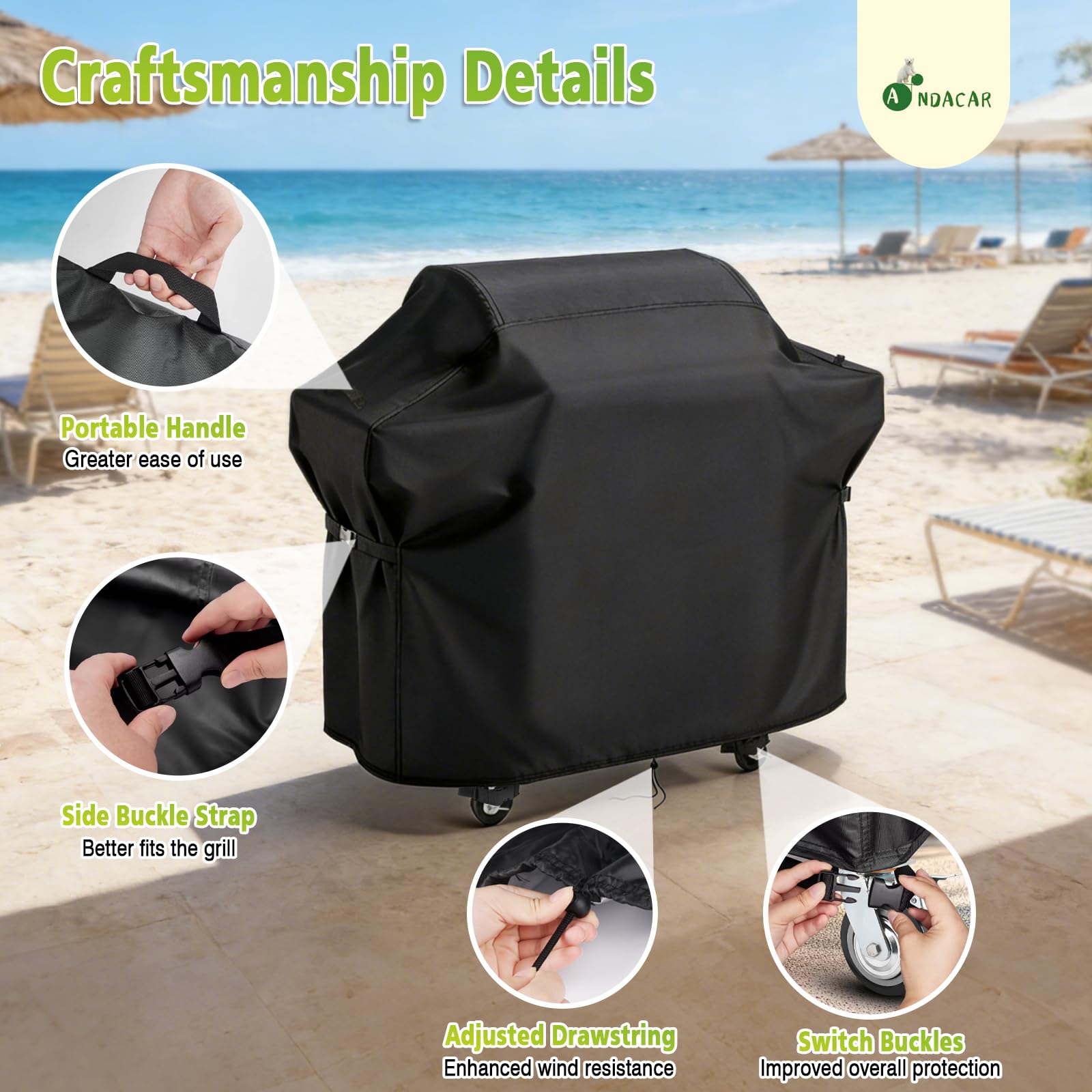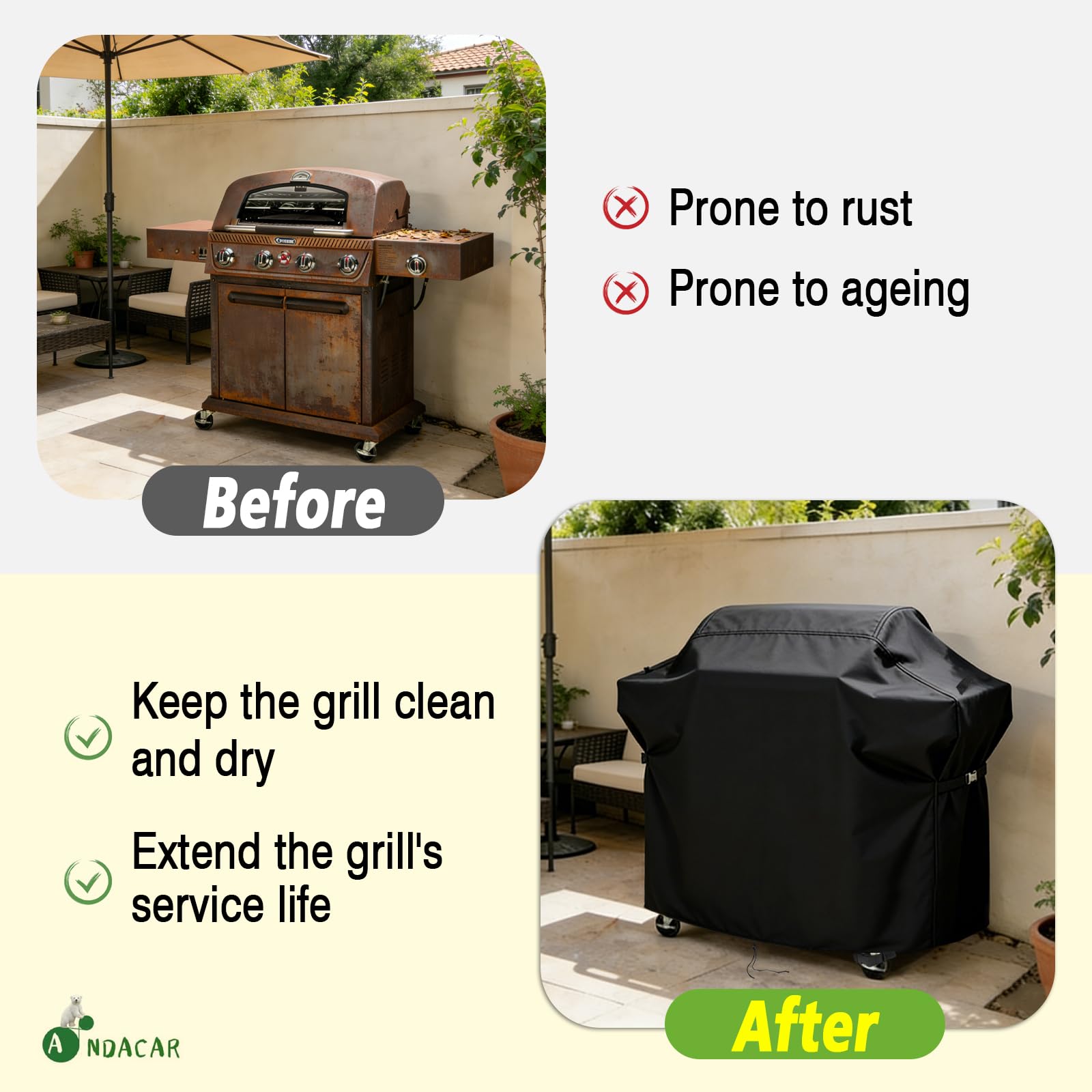DRAWSTRINGS AND BUCKLE: Elastic cord allows the barbecue grill cover to fit better with the burner gas grill; Adjustable buckles on the grill egs for better extra stability, so you don't have to worry about the impact of windy weather.
