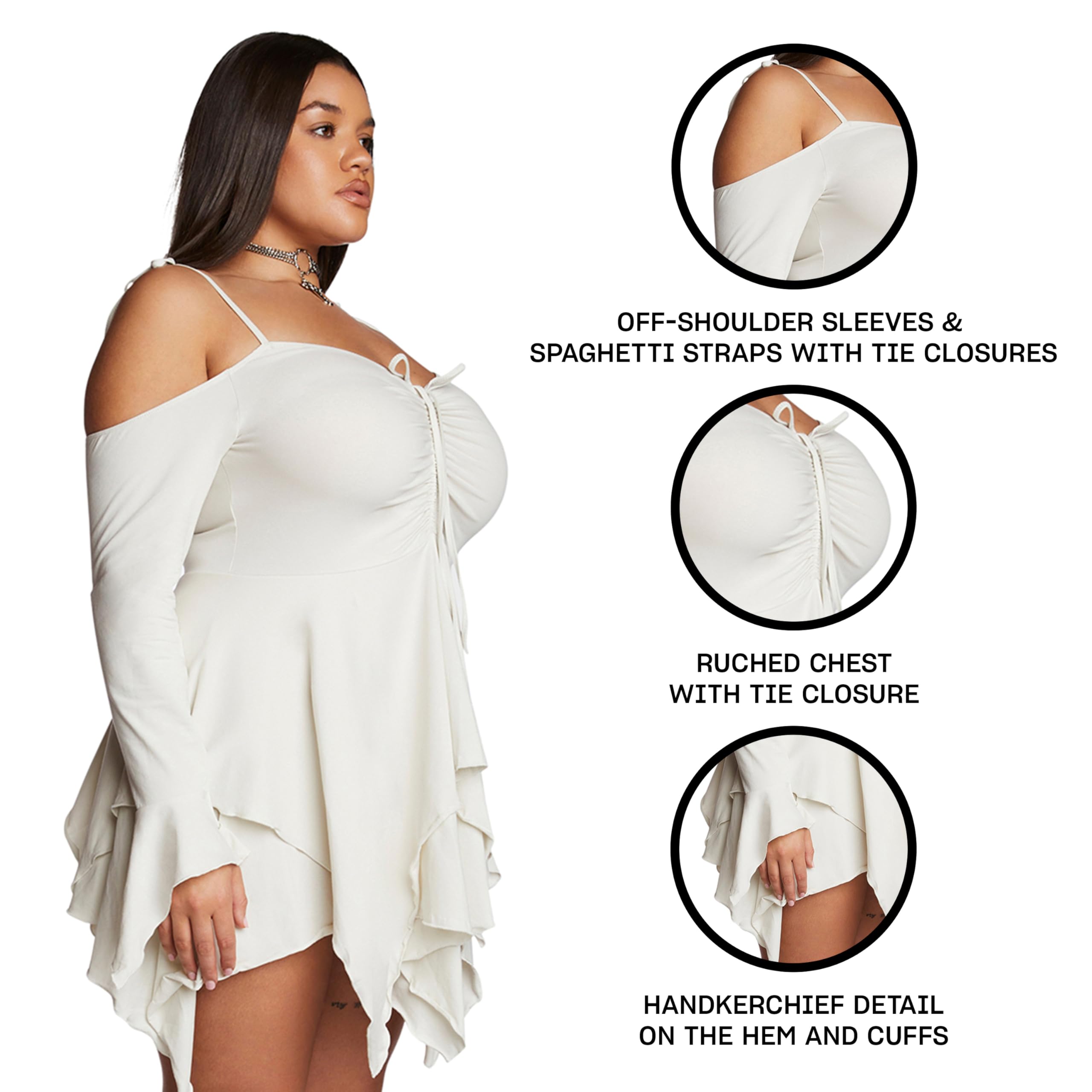 Embrace the Fairycore Fashion: Trend taking over social media and runways. A unique 38” skirt and handkerchief hemline that adds a whimsical touch to this dress, and creates a flattering silhouette.