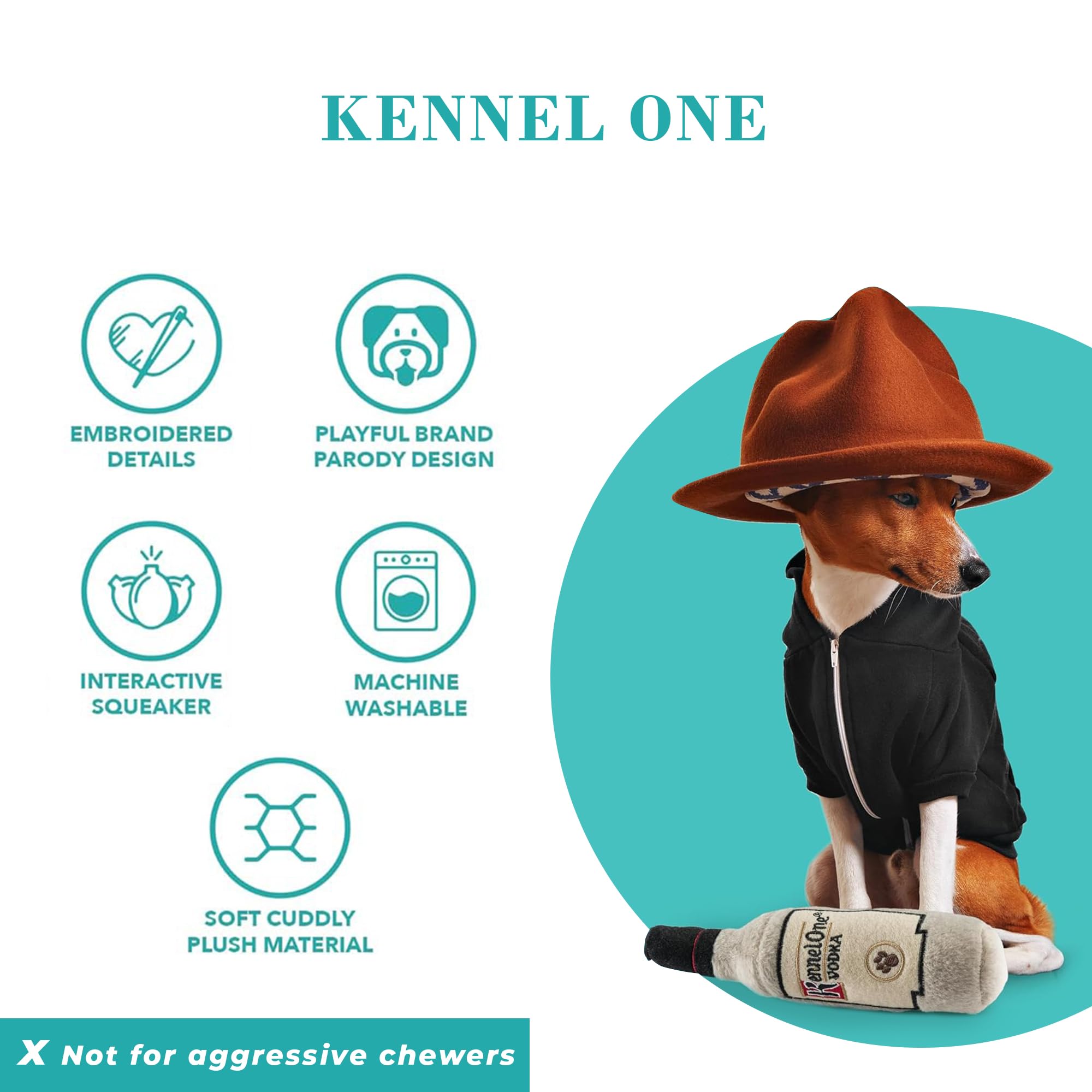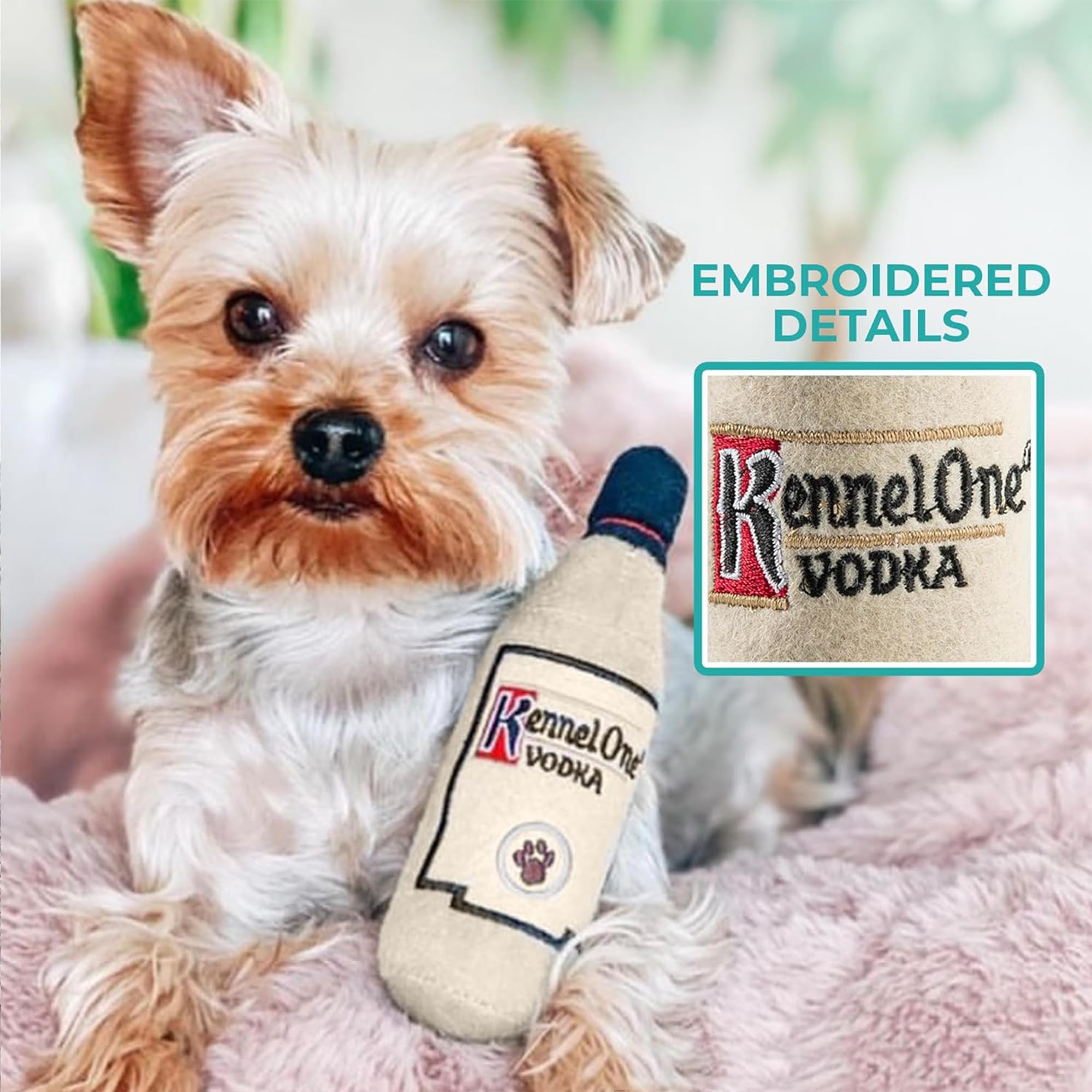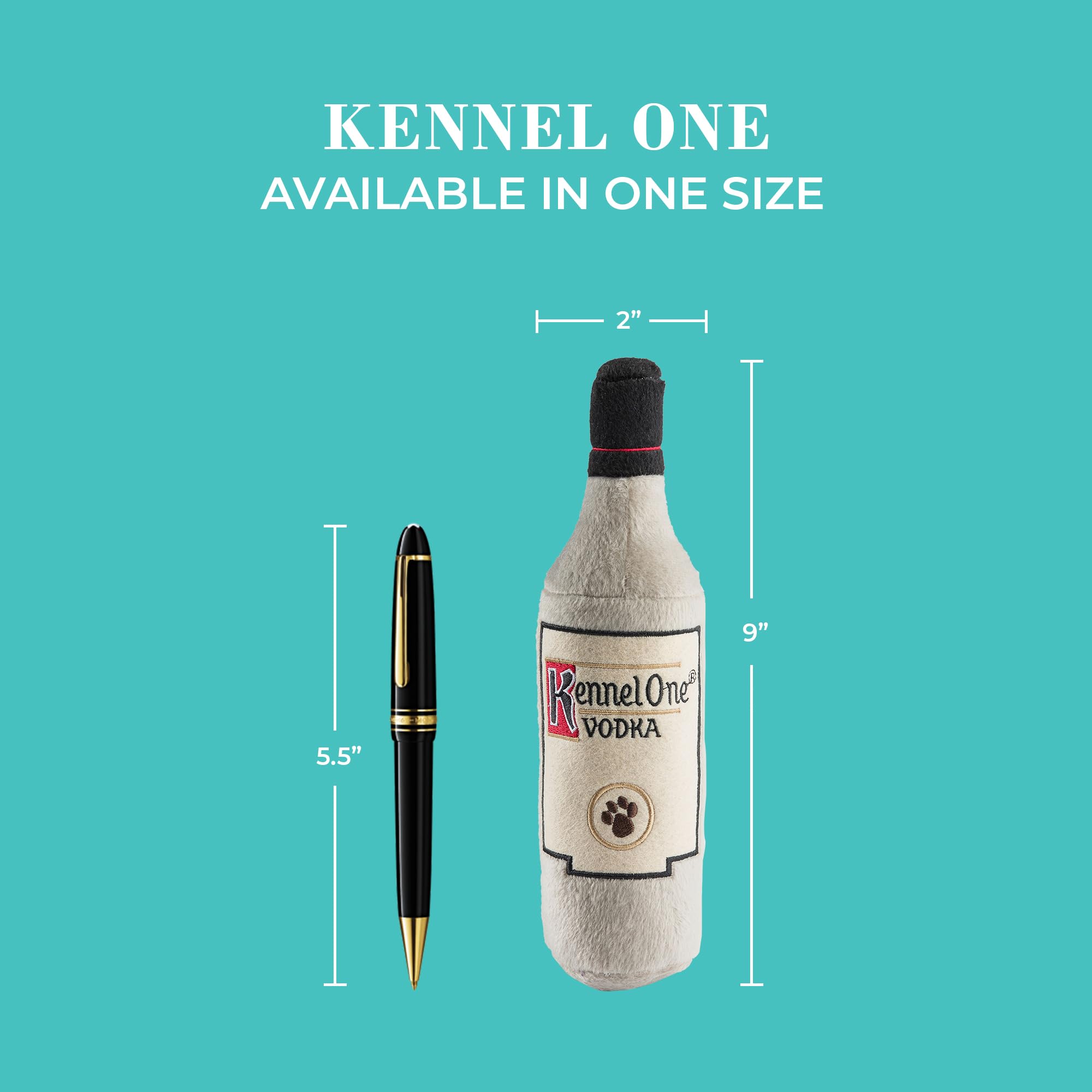 Funny Parody Plush Dog Toy: Make your pup the pawfect bone-dry muttini with the Kennel One dog toy. This dog toy features a grey plush exterior with gold accents and a built-in squeaker hidden inside. It’s a fun, cute interactive dog toy that turns every playtime into happy hour! One Size 9"x4"x2".