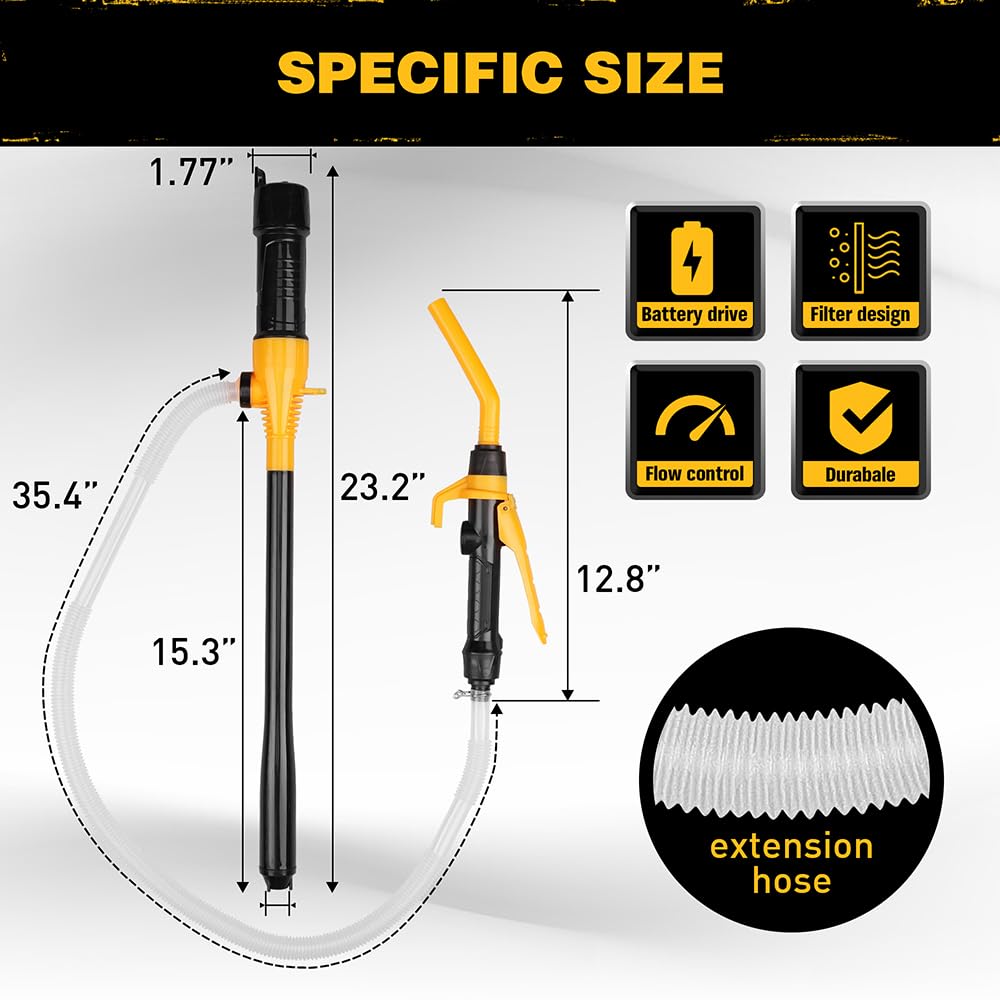 UPGRADED DESIGN - This Portable Power Battery Pump features a newly upgraded flow control nozzle for manual adjustment and a filter design to block impurities, ensuring smooth, clean transfers.