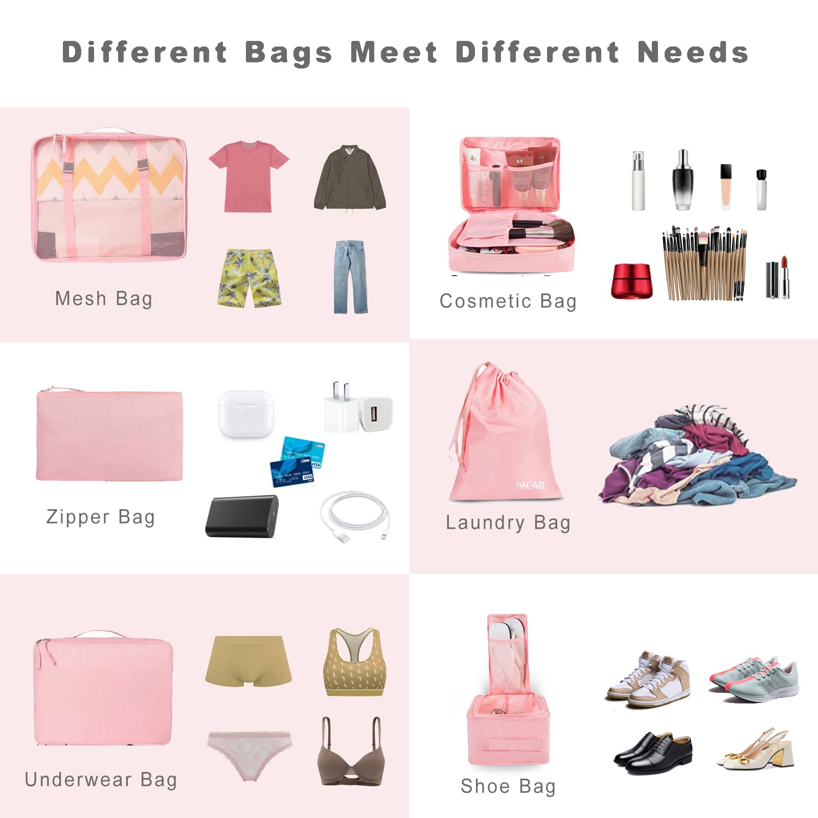 Versatile and Multi Functional: Fit into different sizes of suitcase; Small size bag in the set can also fit airline carry-on bags, tote, weekender, backpack, duffel bag; Suitable for family breaks, business travel, vacation, hiking, camping, trip, etc