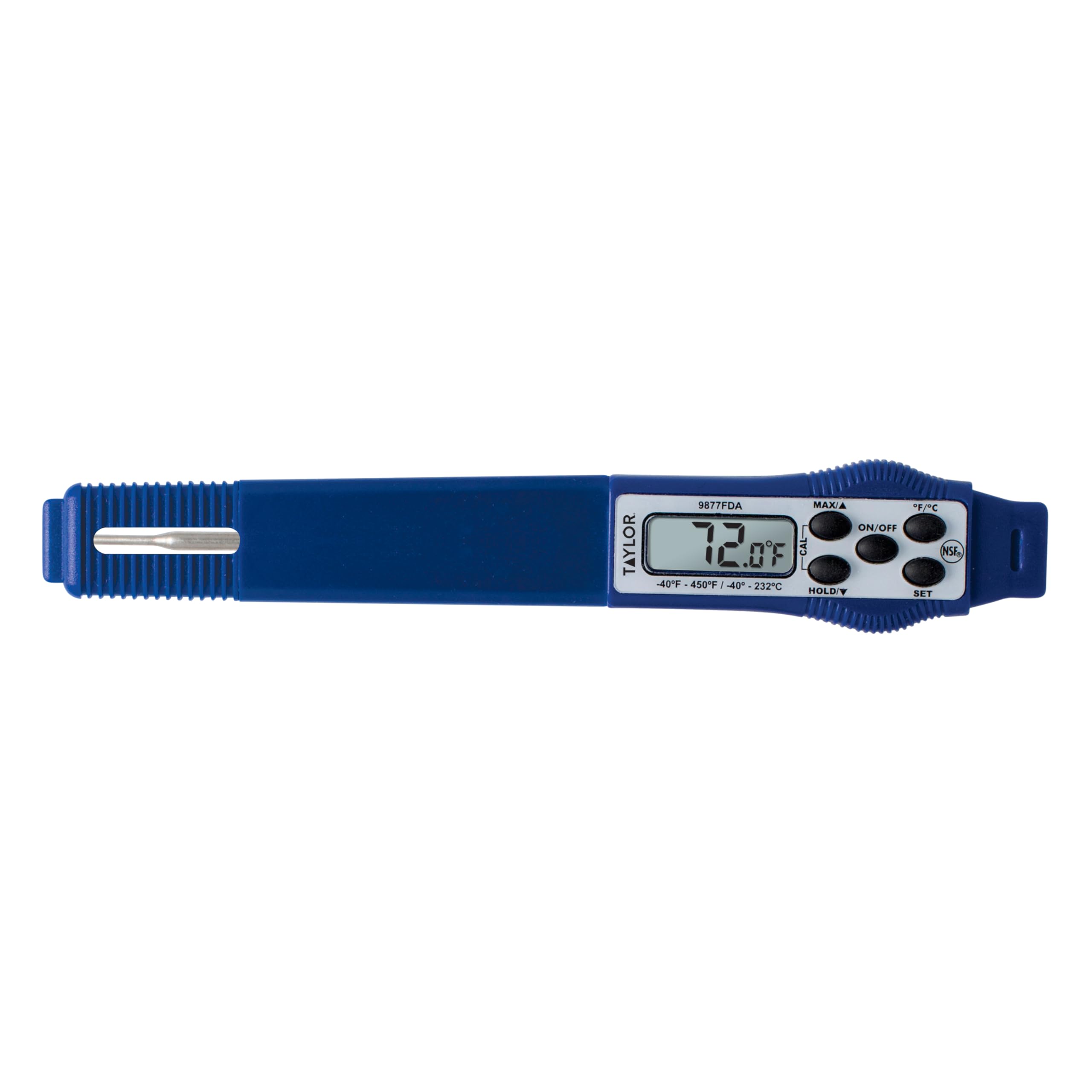 Using Taylor’s 9877FDA Compact Waterproof Digital is one of the easiest ways to ensure that you always hit that core temperature. The thermometer measures temperatures between -40°F to 450°F (-40°C to 232°C) and features a button to quickly switch between Fahrenheit and Celsius temperature scales. The 9877FDA features a fast response time of less than 6 seconds with 1 second updates for greater efficiency in the kitchen. The min/max memory and hold features help maintain control of the temperature. It also has a convenient built-in clip on the case to secure on a pocket sleeve or apron, plus the plastic sleeve snaps on to the thermometer stem so it won’t slide off. The 9877FDA has a solid, durable construction and is built to last.