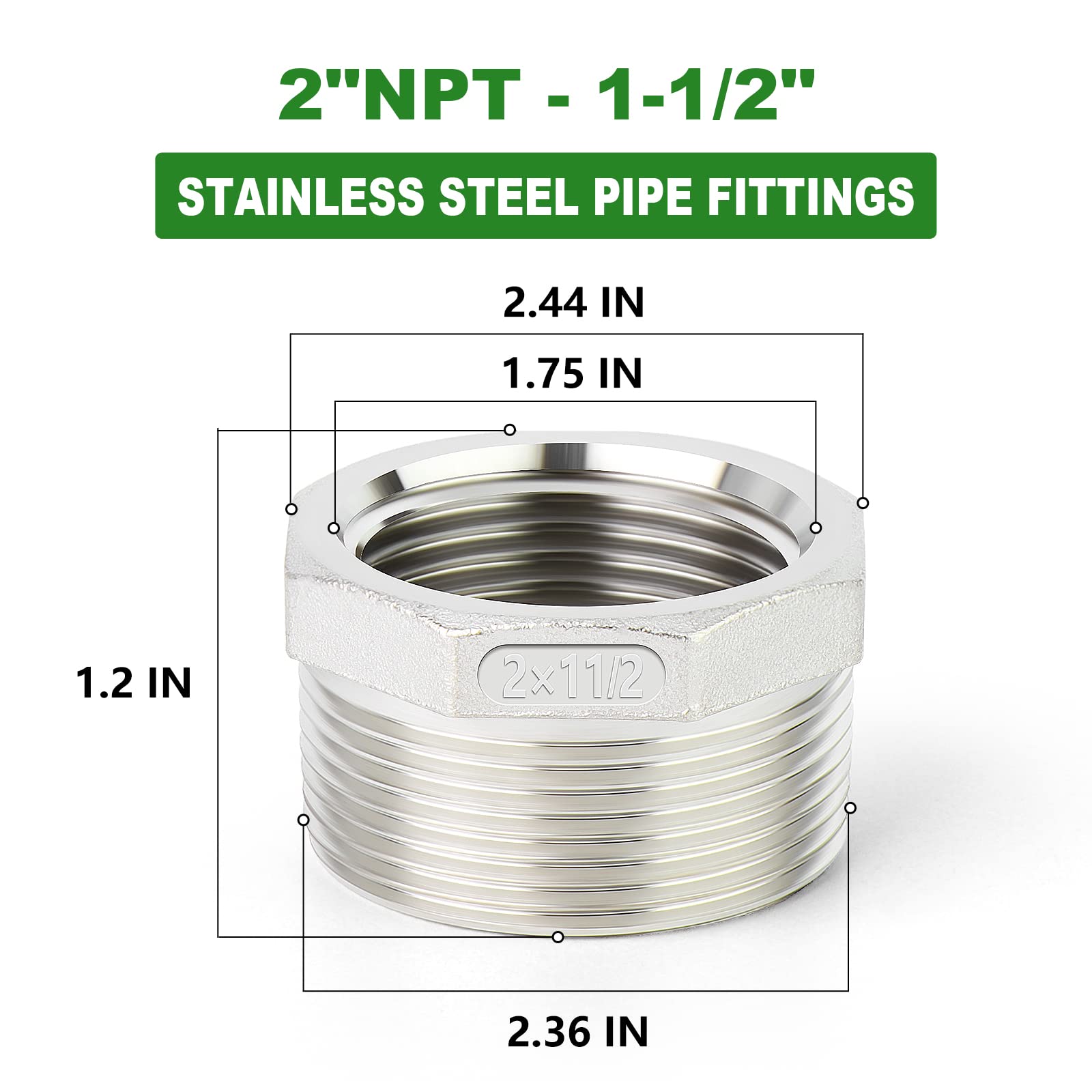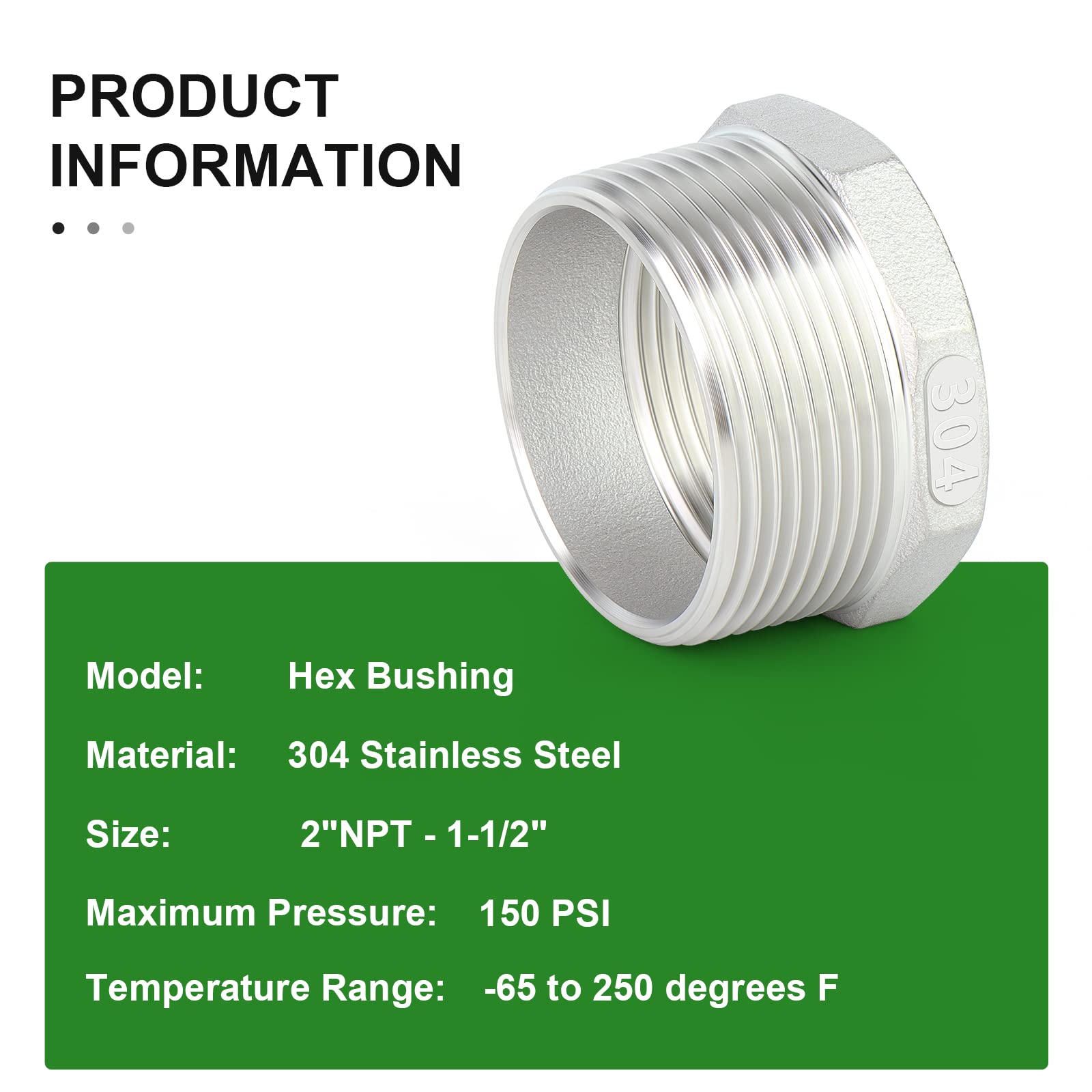 [ Product Type ] Reducer Hex Bushing(2" NPT Male x 1-1/2" NPT Female) ,for industry connecting pipes or fittings with different end types, diameters, or materials.