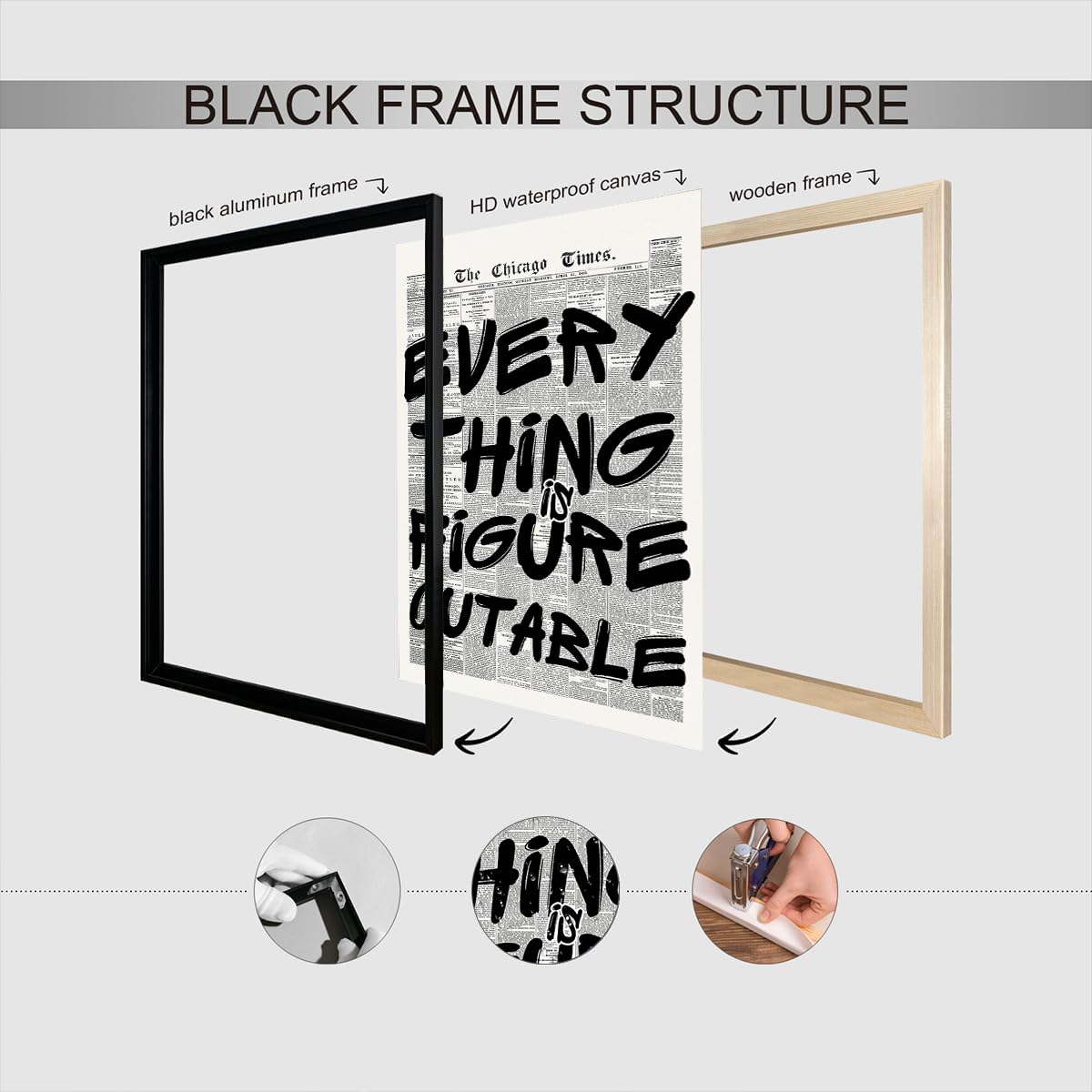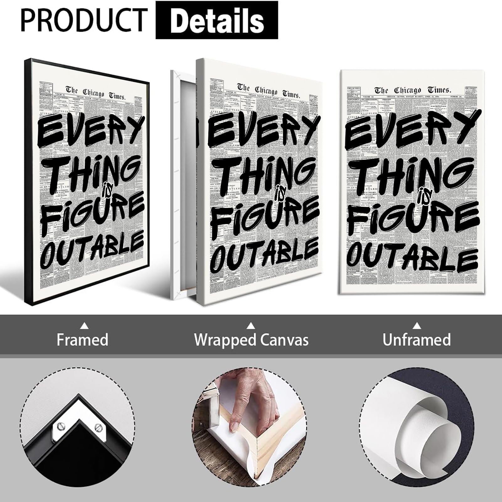 Transform your space with our Aesthetic Black and White Posters – a perfect blend of vintage charm and modern inspiration. These retro wall art prints bring a stylish and motivational vibe to any room, combining sleek design with meaningful messaging. Crafted with precision and care, each poster showcases crisp details and bold contrasts that make them stand out as both art and inspiration. Whether you're decorating your bedroom, office, or creative space, these trendy posters are an ideal choice for adding a personalized and aesthetic touch. From newspaper-style layouts to vogue-inspired visuals, this collection captures the essence of timeless design while staying on-trend. The quote "Everything is Figureoutable" adds a powerful message to your decor, making it not just a visual delight but also a source of daily motivation. Elevate your room’s aesthetic with these must-have vintage posters and let your walls speak with style and substance.