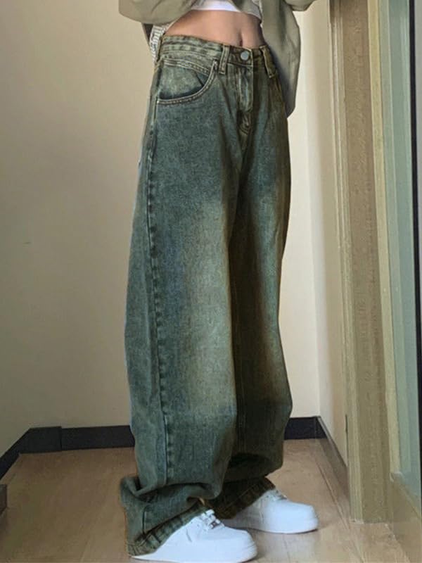 Vintage boyfriend jeans come with 4 traditional pockets. Intentionally distressed design in the pockets' edges, providing these women's jeans with both style and function. Y2k baggy jeans with zip fly, button closure and belt loops for your ease of use.