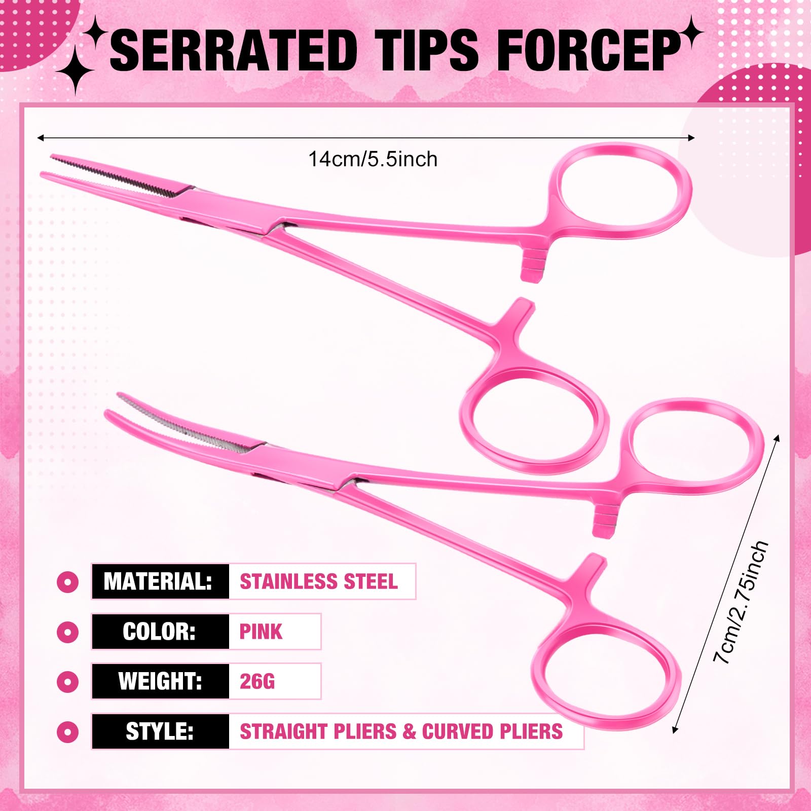 Set of 2 forceps: the package includes a straight and curved pliers with serrated jaws which can enhance the friction of pliers and bring you a good user experience; You can choose the type of pliers suitable for you in different use environments to make your work go more smoothly