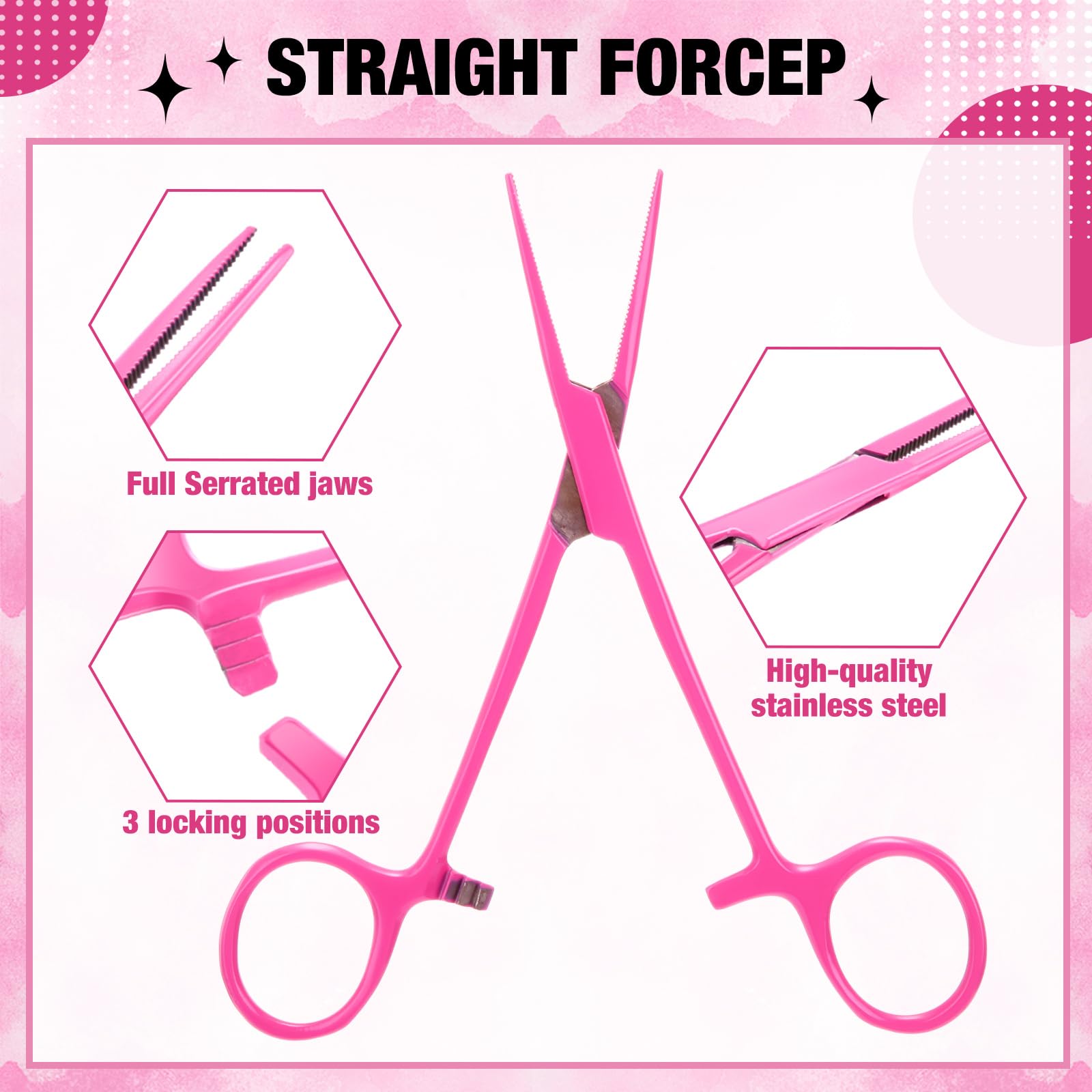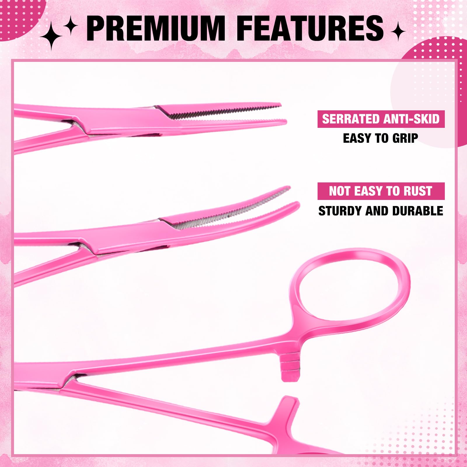 Full serrated jaws: these hemostat clamps provide strong grip for small objects; Each instrument has at least 3 tension/ locking positions for versatility and optimal performance, which can effectively hold small objects firmly