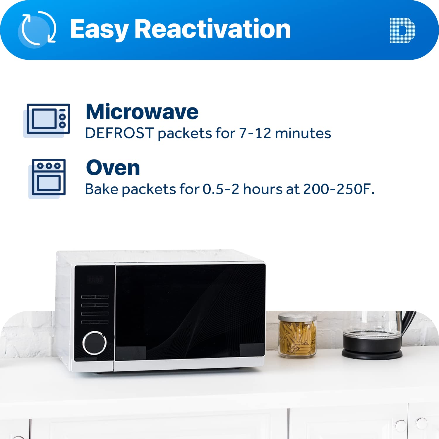 [Ultimate Moisture Absorption and Reactivation] Packet Material is Special Fabric by Spunbond Technology; For reactivation, place packets in the Oven for 0.5 to 2 hours at 200 to 250F or Microwave for About 7 to 12 Minutes at Defrost Mode;