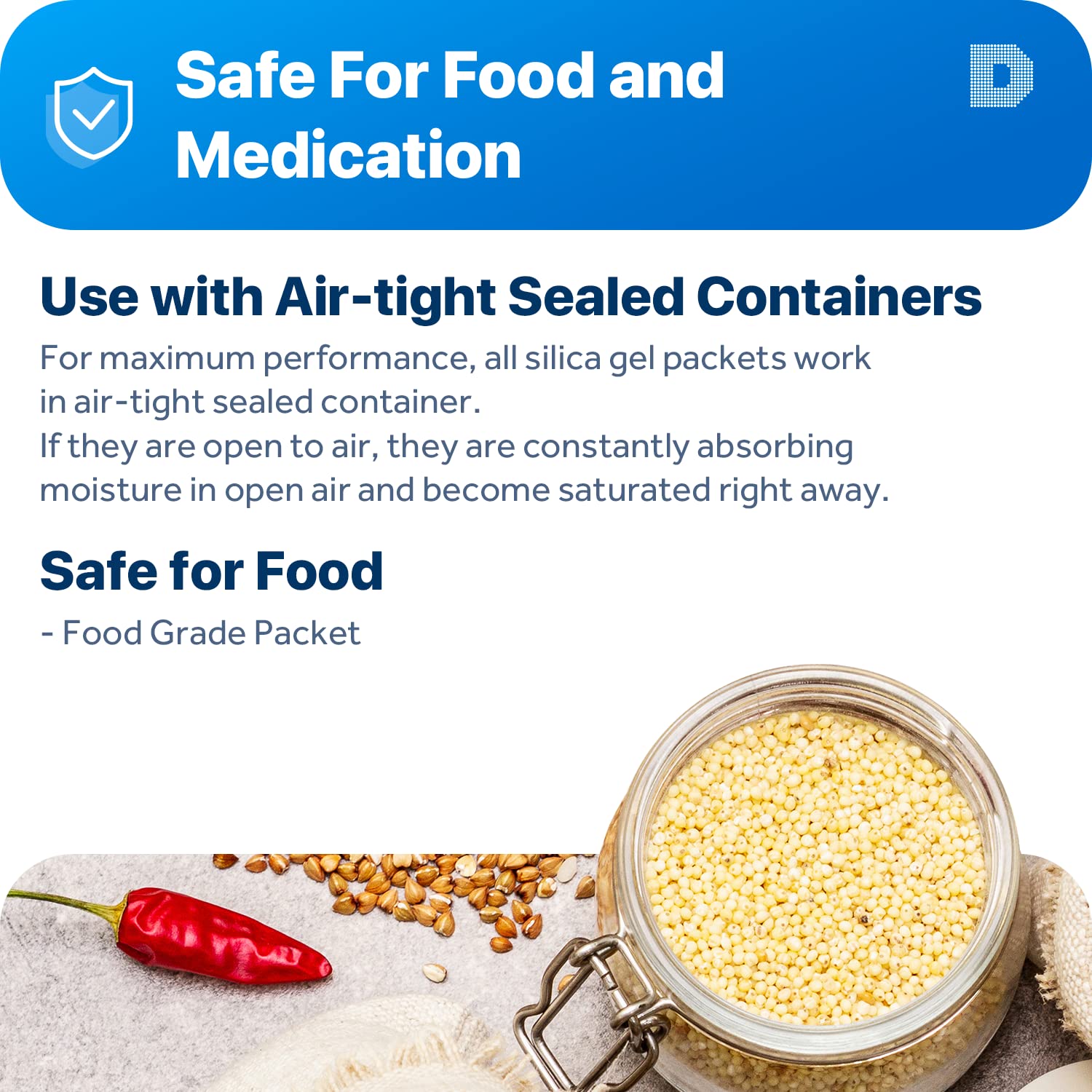 [Special Thickness] Silica gel packs are stored in a Resealable Bag for Easy Storage and Use (Newly designed air tight sealing and sturdy bag for moisture control); Packet Material is Specially made in South Korea