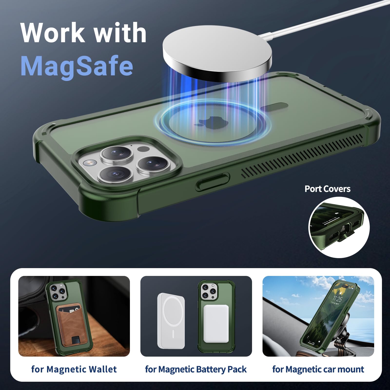 [Magnetic Craft] The built-in magnetic ring can strengthen the magnetic absorption, empowering the case to be compatible with wireless charger, magnetic car mount, magnetic battery bank, magnetic wallet, and most MagSafe accessories. The perfectly aligned magnets enable wireless charging faster and safer than ever. Wireless charge on with the case on.