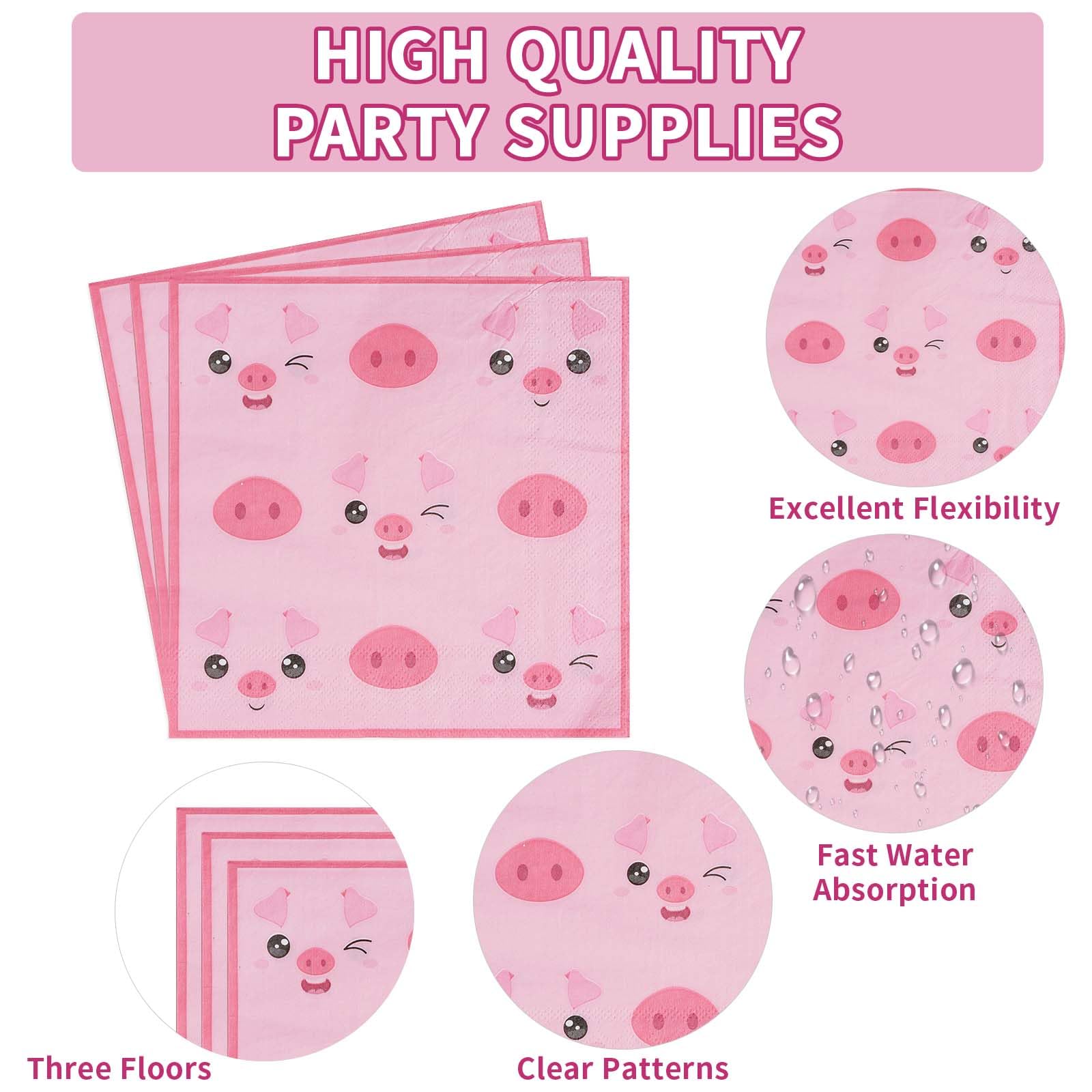 Premium material: All of our piggy theme plates and napkins are made of quality paper, the thickened could withstand normal food weight. The pink pig design are well-printed, avoid fading embarrassment